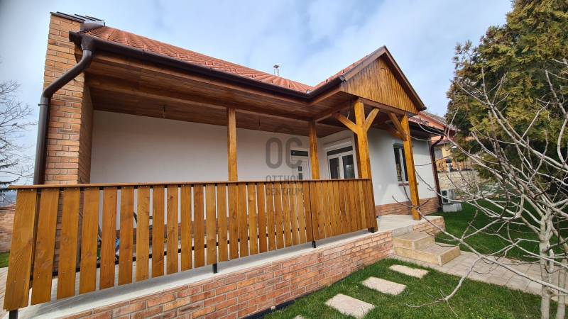 Pomázon kínálok megvételre egy SIP technológiával épített, könnyűszerkezetes házat.A könnyűszerkezetes szóhoz kapcsolódó negatív sztereotipia ne tévesszen meg senkit, a SIP egy szendwich paneles eljárás.A SIP panel, vagy más néven a SIP modul, két OSB lap közé egy speciális anyaggal beragasztott EPS, XPS, vagy PUR szigetelőlemez formaldehid-mentes, és környezetbarát kötőanyagaival nem károsítja az egészséget.Kiváló a hőszigetelő tulajdonsága, így egy 30 cm-es külső fallal már a passzívház határértékének megfelelő hőszigetelés érhető el, és a statikai tulajdonságai alapján nincs szükség külön tartószerkezetre (önhordó szerkezet).Az építész tervrajza alapján a paneleket az üzemben pontos méretre gyártják; a “vinkli, az derékszög, a függőleges, az nem hasas, a vízszintesek nem a végtelen előtt találkoznak, a belmagasság bármelyik ponton mérve, bármelyik helyiségben azonos.Nincs felesleges, leeső anyag, pontosan annyit szabnak ki, mint amennyire szükség van. Nem kell 2 teherautó sittet tárolni, kezelni, elszállíttatni az építkezés végén, mert alig van hulladék. A környezetet sem terheljük, és a kezelési, elszállítási költség is elmarad, és nem szegjük nyakunkat a féltéglák, megkötött cementbuckák halmai között.Helyszínen a pontosság miatt rendkívül gyors az összeszerelés; gyakorlatilag a semmiből 60-90 nap alatt kulcsrakész átadás történhet.Már saját magunk is tapasztalhattuk a tervezés fázisában: azonos energetikai besorolás mellett közel 10 %-kal nagyobb hasznos alapterületet kapunk egy téglaházhoz képest. Vékonyabb falazat használatával energiatakarékosabb épület építhető. (Már most teljesülnek a 2020-tól bevezetésre kerülő nagyon szigorú energetikai szabványok előírásai.)A nyílászárók műanyagok, három rétegű üveggel.Az udvarról és az eresz rendszerből egy talajba ásott 2 köbméteres szikkasztóba távozik a víz, így biztosítva, hogy ne képződjön sár az udvaron.A padlás szinten egy 20 m2-es rész biztosít extra pakolási lehetőséget.H tarifás elektromos hálózat áll rendelkezésre.A fűtés hőszivattyús, ezen kívül hűtő-fűtő klíma áll rendelkezésre.20 m2-ess terasz egészíti ki.A telken két ház van, osztatlan közös tulajdon, a teljes telek 940 m2, az ehhez a házhoz tartozó rész 375 m2.Ha felkeltette az érdeklődését hívjon bizalommal.