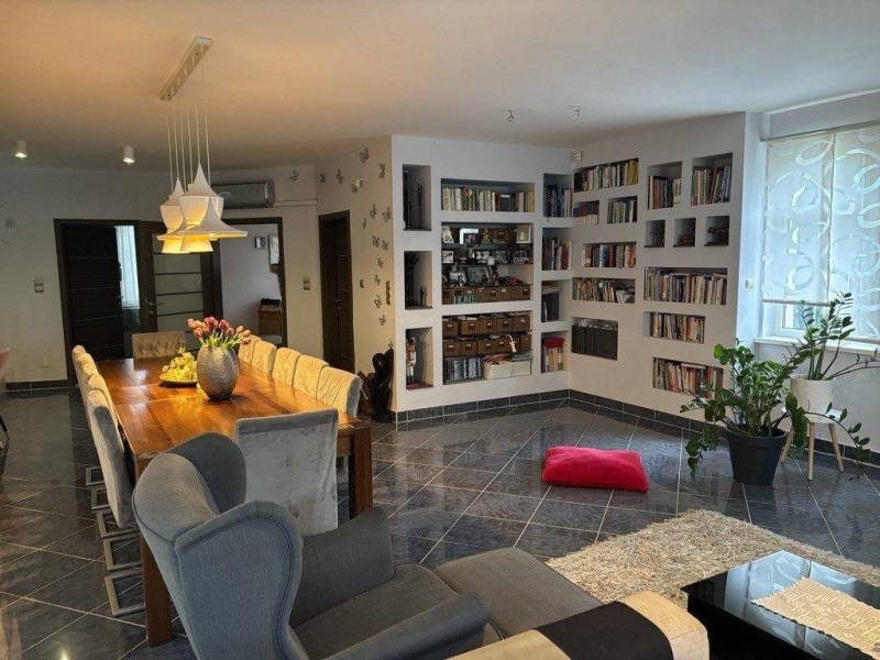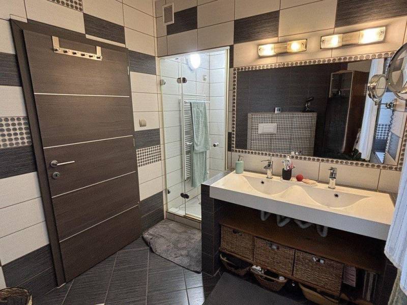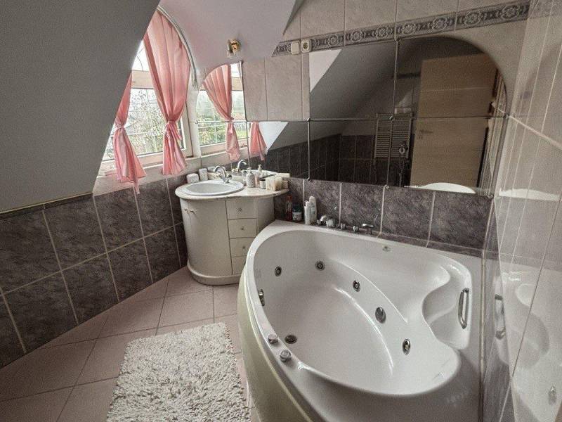 KÉNYELEM, CSEND, NYUGALOM A KERTVÁROSBAN!Tiszaújváros kertvárosi részében eladó 847 nm-es telken, 181 nm nettó alapterületű, földszint + tetőtér beépítésű, jó állapotú, 1+2 szoba + nappali elrendezésű, téglából épült, duplakomfortos családi ház, melyhez 34 nm-es dupla garázs és 18 nm-es pince is tartozik.Telek leírása- udvara füvesített, örökzöld növényzettel beültetett, fúrt kútról működő automata öntözőrendszerrel felszerelt- fedett filagória alatt kültéri konyha, kemence, bográcsozóhely, sparhelt, gázgrill került kiépítésre- kertben található 8 m x 4 m-es medence gépesített, fűthető- kerítése utcafronton kovácsoltvas, szomszédok felől épített fal, elektromosan nyitható kapuval rendelkezikÉpület leírása- 1999-ben épült, összközműves ingatlan- alap sávbeton, falazat tégla + 8 cm szigetelés, dryvittal vakolva- födémszerkezete monolit vasbeton, tetőszerkezete fagerendából készült zsindely fedésselLakás leírása- 113 nm földszint elrendezése: nappali + konyha + étkező, kamra, fürdő + WC, szélfogó, gardrób, közlekedő- 50 nm tetőtér elrendezése: 1+2 szoba, fürdő + WC, közlekedőt kísérő tükrös gardrób- 18 nm-es pincében szauna került elhelyezésre- 34 nm dupla állásos garázs fűtött, elektromosan nyitható - kényelmes fedett terasza jól élhető, 16 nm nagyságú, dny-i tájolású- hőszigetelt műanyag nyílászárok kerültek beépítésre- hűtő-fűtő klímával felszerelt az emelet minden szobája és a nappali- szobák laminált padlóval, egyéb helyiségek járólappal burkoltak- fűtését kondenzációs gázkazán biztosítja radiátorokon és padlófűtésen keresztül- takarításnál nagy segítség a kiépített központi porszívóAz elmúlt évek során ez az ingatlan folyamatos felújításon esett át. A földszinten megtörtént a fürdő teljes és a konyha részleges felújítása, az egész lakásban új belső ajtók kerültek beépítésre, a világítórendszer korszerűsítve lett, a gázkazánt kondenzációsra cserélték. Kedvező rezsi költséggel fenntartható.Csendes, nyugodt kertvárosi részen épült, mégis könnyen elérhető Spar, termálfürdő, városközpont stb. Szomszédsága nagyon jó. A lakás tartozékát képezi a konyhaszekrény gépekkel, gardróbszekrények és minden, ami beépített.Ez a családi ház kiváló elosztású, mely az alaprajzon megtekinthető.Modern kialakításával kényelmesen élhető, hangulatos otthont biztosít az ott élők számára.Amennyiben szeretné megvásárolni ezt a stílusos családi házat, akkor jöjjön és nézze meg! Vevőink részére szolgáltatásunk ingyenes. Díjmentes hitel ügyintézéssel, lakáskasszával, fix, forint alapú kölcsön ajánlattal, CSOK Plusz ügyintézéssel állunk ügyfeleink rendelkezésére. MIK azonosító: 3999883
