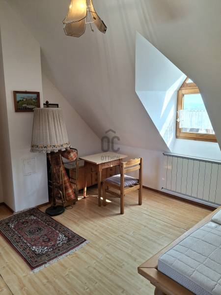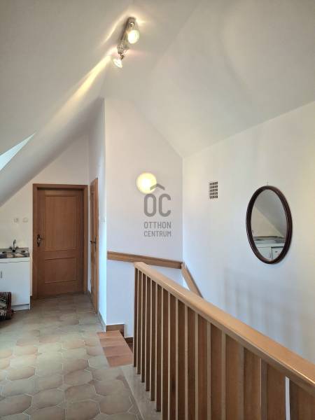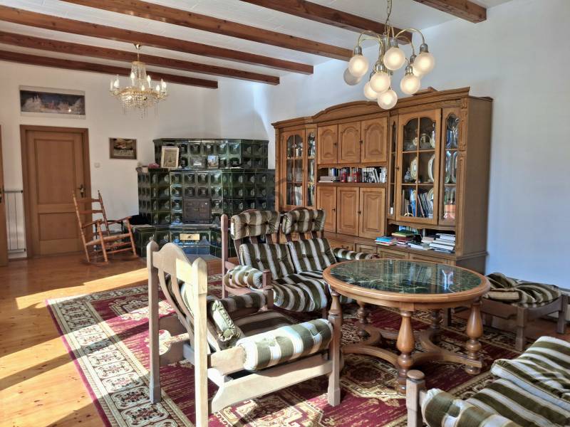 Különleges ingatlant ajánlok figyelmébe Nagyvázsony Ófalujában, kilátással a Kinizsi várra!A két bejárattal rendelkező főépület nagycsaládosoknak, de akár befektetésben ( szállásadás ) gondolkodóknak is tökéletes választás lehet.A HÁZRÓL : - 1995- ben épült, 36 cm-es téglából 4 cm-es hőszigetelő vakolattal, cserép héjazattal- műemlékvédelmi környezetben, a homlokzat kialakítása a fa nyílászárók ehhez alkalmazkodnak- fűtését gázkazán biztosítja radiátorokkal, kiegészítésként cserépkályhák is rendelkezésre állnak- az ingatlan összközműves, riasztórendszer bekötve- helyiséglista: 5 hálószoba, 3 fürdő+ 2 külön wc, nappali, konyha- étkező + az emeleti előterekben teakonyha, borospince, mosókonyha és kazánház- mindkét bejárat a teraszról nyílikALAPTERÜLETEK:-földszint: 131 m2-emelet: 71 m2-pincék: 41 m2-terasz: 35 m2-melléképület: 45 m2A TELEK:- a ház telekhatáron való elhelyezkedésének köszönhetően tágas, hangulatos udvar- a két helyrajzi számból álló telek mérete 935 m2- a melléképületben lévő tárolóból akár vendégszobát is kialakíthatunk, a nyitott része pedig nyári konyhának tökéletes- a telken álló kerekes kútból a locsolás szivattyúval megoldottAz ingatlan per- és tehermentes, rövid időn belül birtokba vehető. Az irányár tartalmazza a teljes berendezést.Nagyvázsony egy festői szépségű település a Balaton- felvidéken.Tapolca és Veszprém között a 77- es út mellett, 14 km-re a Balatontól.A település szívében található a híres Kinizsi vár, melynek felfedezése során betekintést nyerhetnek a középkori életbe.De a pálos kolostor romjai, a Néprajzi múzeum és a Postamúzeum is érdekes látnivalók.A közeli erdők és dombok remek lehetőséget kínálnak gyalogos és lovas túrázásra, kerékpározásra.Ha felkeltettem érdeklődését, szeretné megtekinteni vagy kérdése merült fel, várom megtisztelő hívását!