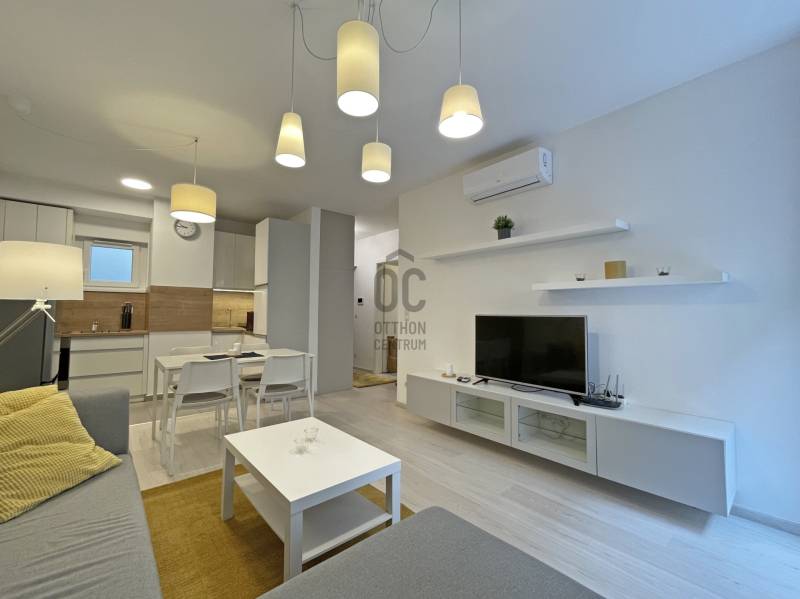 Kivételes lehetőség befektetők számára Budapest szívében, a felkapott Corvin negyedben! A Cordia Átrium ház 2. ütemében kínálok megvételre egy 43 négyzetméteres, bruttó 52 nm-es, újszerű lakást a Corvin sétányon, amely ideális választás lehet mindazok számára, akik modern, belvárosi otthonra vágynak vagy éppen befektetési céllal keresnek ingatlant. Ez a 2 szobás, jó állapotú lakás tökéletesen illeszkedik a mai kor elvárásaihoz. Az ingatlanhoz tartozik egy 18 négyzetméteres terasz is. A lakás amerikai konyhás kialakítása és beépített bútorai garantálják a maximális kényelmet és praktikumot. A házközponti fűtés egyedi méréssel működik, a hűtésről pedig klíma gondoskodik, így a lakás egész évben kellemes hőérzetet biztosít. Rezsije, egy lakó esetén, 35.000 Ft körül van havonta. A Corvin negyed nem csupán a lakás minősége miatt vonzó, hanem a környék kiváló ellátottsága és közlekedési lehetőségei miatt is. A központi elhelyezkedés lehetővé teszi, hogy mindössze pár perc alatt elérje a város legfontosabb pontjait. A Corvin negyedben való ingatlanvásárlás nem csupán egy lakás megszerzését jelenti, hanem egy életstílus választását is. A környék folyamatosan fejlődik, új üzletek, kávézók és éttermek nyílnak, ami tovább növeli az ingatlan értékét. A modern városi élet minden előnyét élvezheti, miközben egy nyugodt, zöld környezetben élhet. Amennyiben Ön is szeretne részesévé válni ennek a különleges lehetőségnek, várom megtisztelő hívását. A lakás megvételéhez piaci kamatozású lakáshitel felvételével vásárlók megkeresését is nagy szeretettel várom!Az igénylési feltételekkel kapcsolatban, valamint ezek ügyintézésben is, irodánk tapasztalt hitelközvetítő munkatársával együtt, készséggel állok az Ön szíves rendelkezésére!