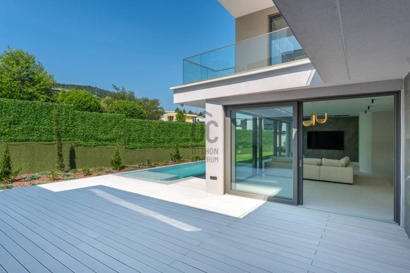 Buda népszerű villanegyedében, közvetlenül a Natura 2000-es erdőterület mellett, csendes mellék utcában megépült felsőkategóriás ingatlan, dupla garázsbeállóval!3 szintes épület modern részletgazdag homlokzati elemekkel kialakított luxusvilla:pinceszint: 84,15 m2földszint: 85,24 m2 + 62 m2 terasz (medencével)emelet: 62,21 m2 +49,05 m2 terasz- átlagfeletti 280 cm illetve 290 cm-es belmagasság!- a legújabb prémium olasz design burkolatok- a baráti összejövetelekre is alkalmas nagyméretű nappali (60nm)- a nappali teljes szélességében eltolható üvegfal nyílik a kert felé, amely közvetlen kapcsolatot teremt a 85 m²-es földszinti terasszal, ahol egy integrált, fűthető medence biztosítja az exkluzív pihenést.További extrák:- Robbanás biztos, 16 ponton zárodó izraeli gyártmányú smart bejárati ajtó 3 MFt értékben!- okosfólia a villa egyes részein- az ablak gombnyomásra sötétedik!- unikális prémium gyártmányú, állítható szögű világítótestek, mágneses sínekkel! Csak feldobod a lámpát oda ahova szeretnéd!- külön hűtő a húsnak és külön a zöldségnek!- motoros hőszigetelő lamellás zsalúziarendszer, közel 99%-os sötétítéssel!- a nappaliban egy impozáns méretű, olasz tervezésű médiafal, prémium olasz ülőgarnitúra és nagyméretű étkezőasztal kap helyet.- hálószobákban osztrák tömörfa parketta biztosít exkluzív megjelenést és időtálló minőséget.- mágneszáras egyedileg gyártott prémium belső ajtók!- telefonról vezérelhető akár az egész ház!- parkosított, jól használható kertrész!- fűtött dupla garázsbeálló, ipari kapuval!- vendégparkoló kialakítva a ház előtt!- napelem kiállás biztosított- kültéri kamerák (távoli elérés) fényérzékelős udvari lámpák- három autó befogadására alkalmas garázs kapcsolódik, valamint programozható, fűthető autólehajtó, amely télen is kényelmes használatot biztosít.- 15 cm kőzetgyapot hőszigetelés- Daikin hőszivattyús mennyezeti és padló hűtés-fűtés rendszer működik, rejtett szellőzőkkel, amely maximális komfortot és energiahatékonyságot biztosít- gondosan megtervezett parkosított kertben japán juharok és dísznövények teremtenek különleges, elegáns hangulatot.Lokáció:- Gépjárművel az Árpád-híd 10 perc- Britsih School 8 perc- Autóval néhány perc alatt elérhető a Gobuda Bevásárló Központ és a Kolosy tér.
