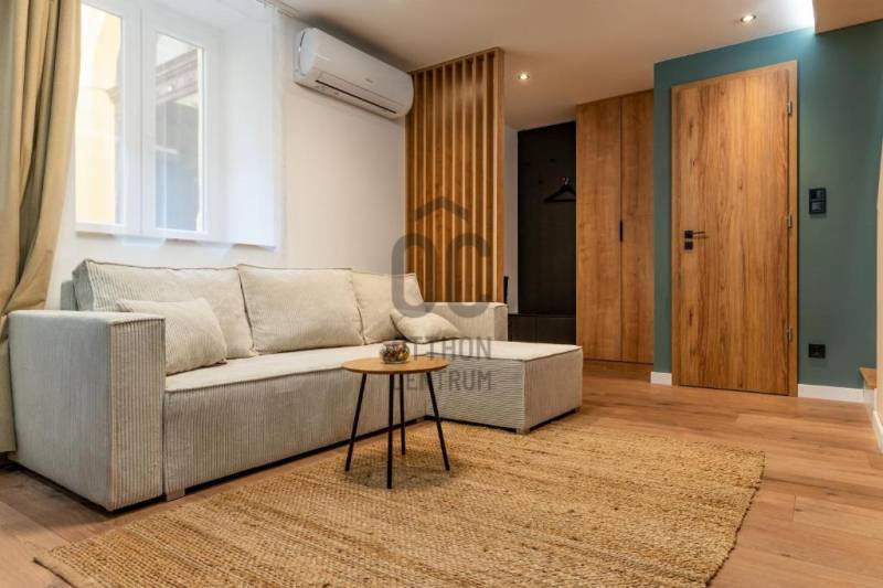 Kiadó egy különleges kialakítású, belső kétszintes lakás Budapest egyik legjobb lokációjában, a Teréz körúton, az Oktogon és a Nyugati tér között.A lakás nettó 23 m², bruttó 46 m², praktikus belső két szintes elrendezéssel.Az alsó szinten egy amerikai konyhás nappali található, valamint egy külön WC. A lakás ezen része bútorozott és gépesített, így azonnal költözhető.A felső szinten két külön hálószoba került kialakításra, mindkettő saját fürdőszobával, ami ritka és rendkívül kényelmes megoldás akár lakótársak számára is. A hálószobák szintén bútorozottak.A lakás földszinti, csendes belső udvarra néz, ezért a körút közelsége ellenére nyugodt lakókörnyezetet biztosít. Rezsi költsége alacsony.Főbb feltételek:Minimum bérleti idő: akár 6 hónapKözjegyzői okirat aláírása szükségesDohányzás nem megengedettKisállat és gyermek nem hozhatóLokációja kiváló: pár perc sétára található az Oktogon és a Nyugati tér, így a közlekedés és a városi infrastruktúra is elsőrangú.