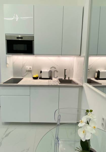 Panorámás, prémium lakások eladók Budapest V. kerületében – Lipótváros szívében(Ez az alaprajzon látható 5-ös lakás)Budapest egyik legpatinásabb városrészében, Lipótvárosban kínálunk megvételre újonnan kialakított, exkluzív lakásokat egy gyönyörű, liftes nagypolgári társasházban. A történelmi hangulatú épület külön érdekessége, hogy egykor Ady Endre is lakott a házban.A projekt keretében összesen 7 lakás került kialakításra, amelyek közül 5 utcai panorámás kilátással, 2 pedig udvari nézettel rendelkezik. A lakások osztatlan közös tulajdonban vannak, ügyvédi megosztási szerződéssel elválasztva egymástól, egyenként külön almérőkkel. A kínálatban galériás és galéria nélküli lakások egyaránt megtalálhatók.(A 3-as lakás már elkelt.)A lakások kialakítása modern és elegáns, amelyet motoros redőnyök, LED hangulatvilágítás és inverteres klímaberendezés tesz még komfortosabbá.Műszaki tartalomA lakások teljes körűen, magas műszaki színvonalon kerülnek kialakításra:teljesen új villamoshálózat rézvezetékekkel, 3 fázisú áramúj nyomóvíz- és csatornarendszergázüzemű padlófűtés az energiatakarékos működés és komfort érdekébeninverteres hűtő-fűtő klíma minden lakásbanúj, hang- és hőszigetelt nyílászárók elektromos redőnyökkelúj beltéri ajtók és hangszigetelt bejárati ajtóúj hideg- és melegburkolatok (csempe, laminált parketta)teljes festés és glettelésmodern szaniterek: épített zuhany, esőztetős zuhanyrendszer, falon belüli WC, lebegő mosdószekrény, Grohe csaptelepekúj elektromos szerelvények és LED világításA lakások 365 cm belmagassággal rendelkeznek, amely különleges térérzetet és eleganciát biztosít.Személyre szabható kialakítás:A vásárlóknak lehetőségük van a lakás bizonyos elemeit saját ízlésük szerint kiválasztani, például:hideg- és melegburkolatokszaniterekelektromos szerelvényekvilágításbeltéri ajtókÍgy a lakás végső megjelenése teljes mértékben az új tulajdonos igényeihez igazítható.A vételár minden felsorolt elemet tartalmaz, kivéve a konyhabútort.ElhelyezkedésBudapest egyik legjobb elhelyezkedésű belvárosi utcája. A közelben számos étterem, kávézó, üzlet és szolgáltatás található, a tömegközlekedés pedig kiváló: metró- és buszmegállók néhány perc sétával elérhetők.Befektetési lehetőségLipótváros az egyik legkeresettebb és legértékállóbb budapesti városrész, ezért az itt található ingatlanok nemcsak lakhatási célra, hanem kiváló befektetésként is ideálisak.A lakások átadása legkésőbb 2026. november 30., azonban előszerződés már most köthető, és az ingatlanok hitelezhetők.