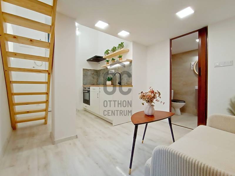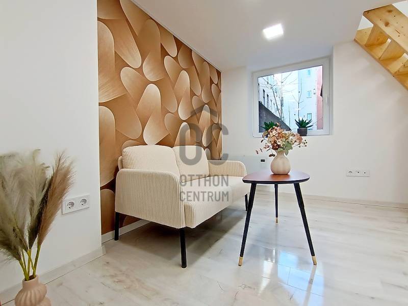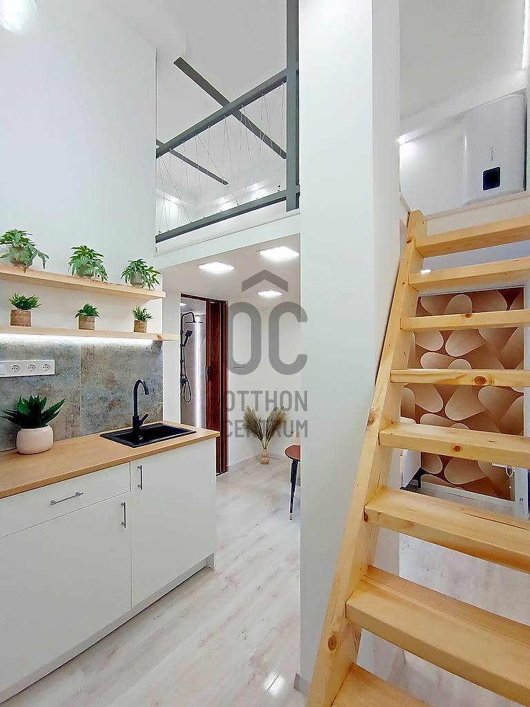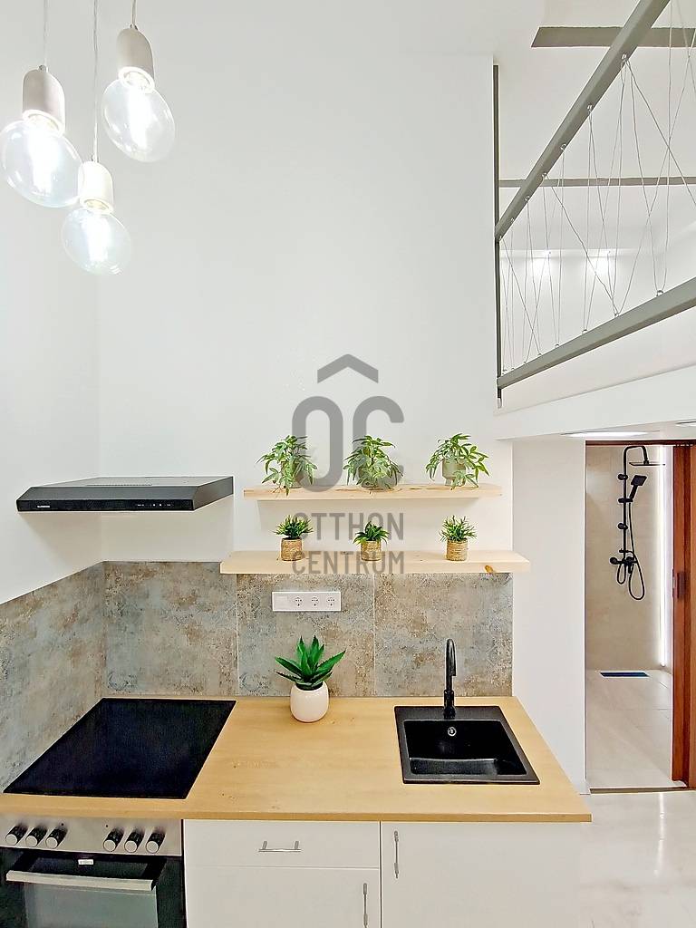 Ha egy esztétikailag és műszakilag is, frissen és teljes körűen, luxus színvonalon felújított, nagyon hangulatos, bútorozott / lakberendezett és gépesített, a belváros ölelésétől körbevett / mindenhez (is) közeli kis lakást keres akár életkezdéshez, akár újrakezdéshez, akár bérbeadáshoz / befektetésnek...…akkor amit kínálok hozzá az pedig nem más, mint egy most a napokban elkészült, esztétikailag és műszakilag is minden apró részletében a legmagasabb minőségű anyagokkal, extra kivitelezéssel, luxus színvonalon történő felújítással és lakberendezéssel teljes körűen újjávarázsolt / újjáépített, összesen 26,5 m2 alapterületén egy kellemes méretű (12,48 m2-es), amerikai konyhás étkezős nappalival, a 4 méter feletti belmagasságnak köszönhetően pedig - a méretéből adódóan, egy külön hálószobának és egyben akár még plusz egy dolgozósaroknak is kiválóan használható(!) 10,25 m2-es alapterületű galériával - és ezen kívül természetesen egy minden igényt kielégítő, 3,7 m2 alapterületű zuhanyzós fürdőszobával büszkélkedő garzonlakás a VII. kerületi, Nefelejcs utcának - a Keleti pályaudvar közvetlen szomszédságában - lévő részén. A szóban forgó ingatlant eredetileg egy nagyobb alapterületű (egy társasházi albetéten lévő) lakásból „egy újonnan kialakuló 2 lakásos projekt részeként” a másik (szintén teljes körűen felújított) lakással egyetemben, hivatalos ügyvédi ingatlan használati megosztással alakították ki. Ez a lakás a másik lakástól egy teljesen különálló bejárattal rendelkezik(!), így ezzel is a lehető legprivátabb szférát tudja majd biztosítani az új tulajdonosa számára!Fontos(!): Mivel ez az ingatlan ügyvédi használati megosztással rendelkezik, ezért a 2025. szeptember elejétől életbe lépett, fix 3%-os kamattámogatott „Otthon Start” hitelkonstrukció, sajnos nem igényelhető meg rá!A lakás mind tulajdon jogilag, mind pedig az ingatlan használati (megosztási) joga szerint is teljesen rendezett, valamint teljes mértékben tehermentes, így a teljes vételár kifizetése után, természetesen azonnal birtokba is vehető!Műszaki és egyéb jellemzők (csak a teljesség igénye nélkül):- Az ingatlan részét képzi a modern, beépített és gépesített konyhabútor, egyéb lakberendezési tárgyak / bútorok (pl.: kanapé, komód, stb…)- A lakás természetesen teljes gépesítést is kapott (pl.: Aquastic digitális (Wi-Fi-s) villanybojler, falra szerelt, programozható és vezérelhető, energiahatékony elektromos (norvég) fűtőpanel, munkalapba épített kerámia főzőlap, külön beépített sütőbox, szag-, és páraelszívó berendezés, fürdőszobai elektromos törölközőszárító, stb…)- A lakás saját (egyedi) 32A teljesítményű elektromos mérőórával rendelkezik és a felújítás során természetesen egy teljesen új villamoshálózati rendszer került kialakításra!- A társasház külső homlokzatát és a belső lépcsőházas-függőfolyosós udvarát tekintve is jó állapotban van, viszont a lakást közvetlenül érintő homlokzat és lábazat újjávarázsolása (a fotók tanúsága szerint is...) egy pár napon belül elkészül(!)- A lakóközösség nagyon rendes és segítőkész. A közös képviselet / társasházkezelő cég a ház teljes körű megújulásának érdekében folyamatosan teszi a dolgát……és persze sorolhatnám még, de inkább éljen a lehetőséggel, jöjjön el és nézze meg személyesen, győződjön meg mindenről a saját szemével, kérdezzen bátran, beszélgessünk róla, tudjon meg mindent, szeressen bele és csapjon le erre a kiváló lehetőségre, mielőtt ezt Ön helyett más teszi / tenné meg !!! :)Egyedülállóknak, életkezdőknek, újrakezdőknek, akár pároknak is egyaránt jó szívvel ajánlom, de a belvároson / kerületen belüli kiváló elhelyezkedésének és így a rendkívül gyorsan és nagyon kedvező feltételekkel történő - akár rövid távú (Airbnb), akár hosszú távú - kiadhatóságnak köszönhetően, a befektetési céllal vásárlóknak is egyaránt kitűnő választás!Hihetetlenül frekventált és infrastrukturált elhelyezkedésének köszönhetően - Keleti pályaudvar (pl.: M2-es, M4-es metró, buszok-, trolibuszok...) mindösszesen csak 1 percnyi sétatávolságra(!) - az ingatlan közvetlen környezetében vagy 1-2 perc kényelmes sétával kisebb-nagyobb bevásárlási-, szolgáltatási egységek, közintézmények is mind-mind megtalálhatók! A közelben található (tömeg)közlekedési csomópontnak is hála, a (bel)város egésze szinte percek alatt, kényelmesen elérhető!Ha a leírtak és a látottak alapján felkeltettem az érdeklődését, megelőlegezett bizalmát előre is megköszönve, akár a hétvégén is várom szíves jelentkezését!