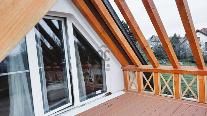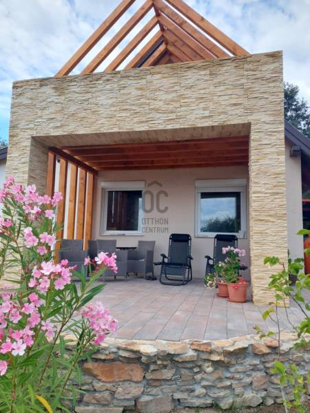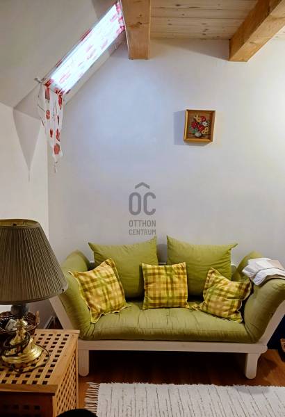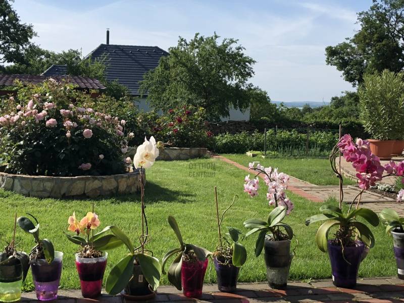 ELADÓ RÉVFÜLÖPÖN REMEK ÁLLAPOTÚ, KÜLÖNLEGES ELHELYEZKEDÉSŰ TÖBB GENERÁCIÓS, PANORÁMÁS NYARALÓ . AZ OTTHON CENTRUM KIEMELT AJÁNLATA !A gyönyörű, gondozott kert ideális, 1266 m2 nagyságú, közel négyzet alakú. Páratlan nyugalmas környezet: Közforgalomtól védett, csak két tulajdonos által használt, zárt magánúton közelíthető meg a belterületi telek, a Kacsajtosi útról, az utcafronttól 60 méterre. Pár perc séta az erdő, a központ és a strand gyalog 10/15 percnyire van. Az épület főbb jellemzői:A ház déli irányba, a tó felé tájolt. 2009-ben épült téglából, cserép fedéssel, nyílászárói műanyagok, Új, a 3 fázisú földkábeles villanyvezeték. Fűtése egyrészt a központi helyiségben lévő takarékos üzemű, megbízható klasszikus skandináv tömegkályhával történik, a földszinti fürdő és az egész tetőtér elektromos padlófűtésű. Emellett hűtő/fűtő klímákkal is temperálhatók a helyiségek. Gáz igény szerint az utcáról elérhető. Csatorna nics, a szennyvíztároló modern, biológiai lebontású.A múlt évben megújult mindhárom fürdőszoba, a tetőtéri halószoba elé egy 11 m2-es terasz készült. Alatta félkör alakú, nagyrészt fedett teraszt alakítottak ki. A ház mellett hangulatos, fa szerkezetű fedett nyári pihenő van, mellette apácarácsos fatároló. A kert alján 3 autó számára alkalmas kocsibeálló létesült. Az épületet tágas terek, és kicsi meghitt kuckók teszik idilli nyaralóvá / otthonná akár nagyobb család, illetve több generáció számára. Használati beosztása:A földszintet L alakú nappali - étkező - konyha foglalja el, valamint fürdő toalettel. Járólapokkal borított lépcső vezet a félemeletig, ahol egy kis közlekedőből hálószoba, hálófülke és néhány további lépcsőfokkal egy háló galéria érhető el. Szép, új falépcső visz a tetőtérbe. Itt a közlekedő egyik feléből egy nagyobb, terasz kapcsolatos háló nyílik, a másik oldalán bájos teakonyha, mögötte fürdő. A terasz balatoni panorámáját nem zavarják villanyvezetékek!Egy külső bejáratú kedves, egyszobás fürdőszobás kicsi apartman szolgálhat még szállásul vendégeknek, fiataloknak. A korábbi, eredeti borospince is innen érhető el. Az ingatlan tehermentes, 1/1 tulajdoni hányadú, belterületi. A tulajdoni lapon gazdasági épületként feltüntetett. Rövid határidővel költözhető.Ha felkeltette érdeklődését ez a befektetésnek is remek lehetőség, megtekintése rugalmasan megoldható.Az adatok kizárólag a megbízóink által rendelkezésünkre bocsátott információkon alapulnak. Fentiekre tekintettel, az adatok teljességéért, helyességéért és aktualitásáért nem vállalunk felelősséget.Az árváltozás, adatmódosítás és közbeni értékesítés jogát fenntartjuk, mindezekért jogi felelősséget nem áll módunkban vállalni.