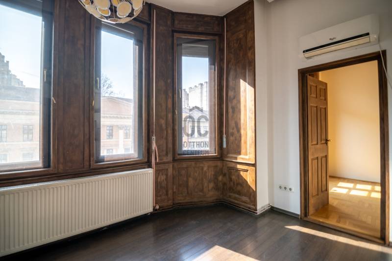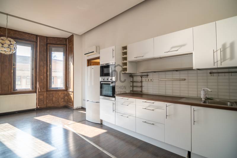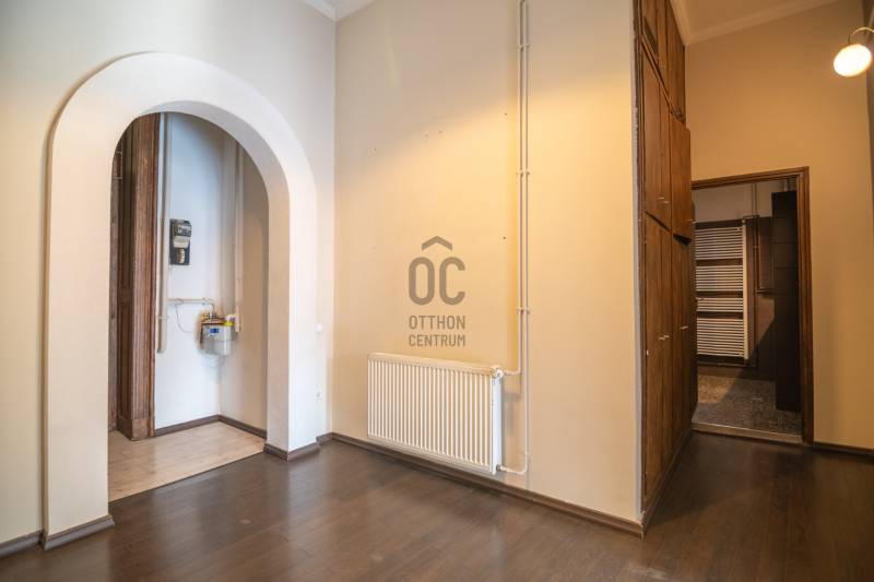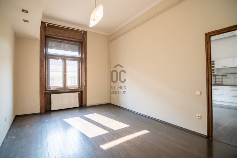 Eladásra kínálok egy különleges hangulatú, 87 m²-es, 3 szobás (2 külön nyíló) lakást a Rákóczi úton, Budapest pezsgő belvárosi részén. A környék infrastruktúrája páratlan: kiváló tömegközlekedés (M2 metró, buszok, villamosok), éttermek, kávézók, üzletek, kulturális lehetőségek néhány perc sétára. A belvárosi élet dinamizmusa és a történelmi környezet eleganciája itt tökéletes egyensúlyban van.A lakás egy rendezett, kívül-belül jó állapotú társasházban található, lift is rendelkezésre áll. Elhelyezkedése különleges: bár hivatalosan első emeleti, az alatta működő könyvesbolt üzlethelyisége jelentősen megemeli a szintet, így a lakás magassága inkább egy harmadik emeleti lakás érzetét kelti – világos, privát és az utcazajtól hatékonyan védett. A 3+1 rétegű, korszerű nyílászárók kiváló hangszigetelést biztosítanak, így a belvárosi elhelyezkedés előnyeit kompromisszumok nélkül élvezheti.A 340 cm-es belmagasság tágas, polgári hangulatot kölcsönöz, a térérzetet még impozánsabbá téve. Az ingatlant 2014-ben vásárolták, azóta mindössze kettő tisztasági festés történt – a lakás jó állapotú, karbantartott.A vastag, 80 cm-es falak rendkívüli hőtartást biztosítanak, ami az idei téli szezonban lehetővé tette, hogy nem kellett a fűtést használni, így a rezsi rendkívül alacsony. A fűtés gáz cirkóról működik, a közös költség 38 000 Ft, amely tartalmazza a vizet is.A fürdőszoba kényelmi szempontból is kiemelkedő: egy tágas, kétszemélyes kád és külön zuhanyzó áll rendelkezésre, a hétköznapi gyors készülődés és a nyugodt, ellazulós esték egyaránt kényelmesek.Bőséges tárolási lehetőségek teszik még praktikusabbá: a beépített szekrények és a külön gardróbszoba minden lakóigényt kielégítenek, így a rendszerezett, kényelmes élet garantált.Előnyök röviden:Déli tájolás, napfényes, világos lakásTehermentes, azonnal költözhetőPolgári jelleg, magas belmagasság (340 cm)3+1 rétegű ablakok a hang- és hőszigetelésértLift a házbanEz az ingatlan ideális választás: saját otthonnak belvárosi életstílust kedvelőknek, értékálló befektetésnek, vagy akár rövid- és hosszú távú kiadásra.Ez az ingatlan a \"Felező csomag\" megbízási portfólióhoz tartozik. Részletek az Otthon Centrum weboldalán.