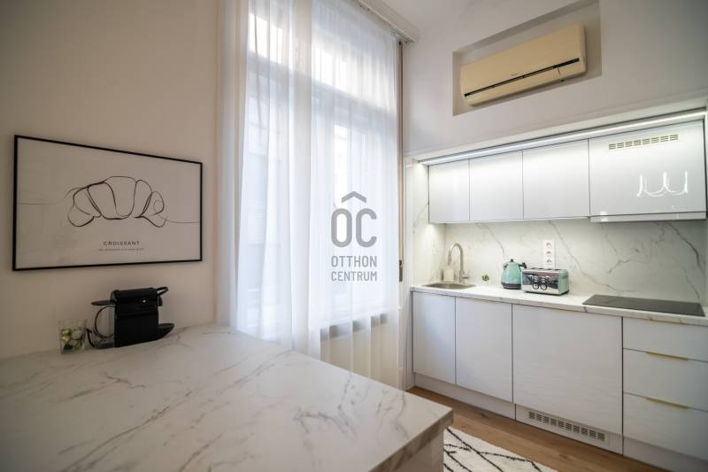 Budapest belvárosának egyik hangulatos V. kerületi sétálóutcájában, a Haris köz patinás épületében kínálok eladásra egy 57 nm-es, 2 szobás, 2. emeleti lakást. Az ingatlan egy rendezett, kis lakóközösségű társasházban található, amely zárt lépcsőházzal és lifttel rendelkezik. A lakás frissen felújított állapotú, tágas terekkel és nagy belmagassággal, így világos és különleges hangulatú otthont kínál új tulajdonosának.A LAKÁSRÓL:Az ingatlan a nagy belmagasságának köszönhetően rendkívül tágas és világos érzetet nyújt.A nappali a sétálóutcára néz, míg a hálószoba a csendes belső udvarra, így a lakás jól ötvözi a városi hangulatot és a nyugodt pihenést.A lakás frissen felújított, az ablakok extra hangszigeteléssel vannak ellátva, így a központi elhelyezkedés ellenére is csendes.A konyha teljesen gépesített, a lakásban két klímaberendezés is található, amelyek a nyári hűtést és az átmeneti időszakban a fűtést is segítik. A fűtésről cirkó gázkazán gondoskodik.A lakásban található bútorok megegyezés tárgyát képezik.A HÁZRÓL:A társasház kis lakóközösségű, rendezett, zárt lépcsőházzal rendelkezik, valamint lift is található az épületben, ami még kényelmesebbé teszi a mindennapokat.LOKÁCIÓ:Az ingatlan Budapest belvárosában, a Haris közben található, egy csendes, hangulatos sétálóutcában. A Váci utca, a belváros egyik legismertebb bevásárló- és sétálóutcája, mindössze pár perc sétára, a Haris köz párhuzamos utcájában helyezkedik el, így a lakó mindennapi bevásárlása és a városi élet könnyen elérhető. A környék rendkívül frekventált, számos étterem, kávézó, üzlet és szolgáltatás található a közelben. A tömegközlekedés kiváló, a környéken busz- és villamosjáratok, valamint a metróvonalak könnyen elérhetők, így a város bármely pontja gyorsan megközelíthető. A lakás ideális azok számára, akik szeretnének közel lenni a belváros nyüzsgéséhez, ugyanakkor csendes és nyugodt otthont keresnek.AJÁNLOM:Ideális választás lehet saját otthonnak, városi lakásnak vagy befektetésnek egyaránt.További információért és megtekintés egyeztetéséhez keressen bizalommal!Egyedi igényekre szabott lakáshitelekkel állunk rendelkezésére.Bankfüggetlen Hitelcentrumunk az országban elérhető összes bank és hitelintézet ajánlatát versenyezteti az Ön számára díjmentesen.Munkatársaink nagy szakmai tapasztalattal, teljes körű CSOK PLUSZ és OTTHON START PROGRAM ügyintézéssel várják Önt előre egyeztetett időpontban akár a normál munkaidő után is.