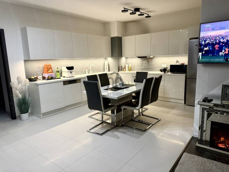 IV. kerületében, Káposztásmegyer egyik legszebb, zárt és exkluzív lakóparkjában kínálunk megvételre egy újszerű, mindössze 2 éve épült, 4 szobás, prémium kivitelezésű lakást.Az ingatlan minden részletében a minőséget és a kényelmet képviseli. Egyedi, prémium asztalosmunkák, magas minőségű, gépesített konyhabútor Bosch készülékekkel, elektromos redőnyök, valamint 3 rétegű hő- és hangszigetelt nyílászárók szolgálják a mindennapi komfortot. A modern gépészetnek köszönhetően hőszivattyús mennyezeti hűtés-fűtés rendszer és padlófűtés biztosítja az energiatakarékos és egyenletes hőmérsékletet egész évben. Az otthonhoz tartozik egy nagyméretű, kényelmes erkély is, amely ideális helyszín reggeli kávézáshoz vagy esti kikapcsolódáshoz.A mélygarázsban egy parkolóhely 10 M Ft-ért és két tároló összesen 12 M Ft-ért kötelezően megvásárolandó.A lakás egy fiatal, rendezett, zárt lakóparkban található, amelyet igényesen parkosított, gondozott zöldterületek, belső sétányok és magas szintű biztonság jellemez. A lakóközösség kulturált, a környezet nyugodt, mégis kiváló infrastruktúrával rendelkezik: a közelben bevásárlási lehetőségek, oktatási intézmények, tömegközlekedés és szabadidős lehetőségek egyaránt megtalálhatók.Ez az ingatlan ideális választás családoknak vagy azoknak, akik modern, energiatakarékos, exkluzív környezetben szeretnének élni Újpest egyik legkedveltebb részén.Amennyiben egy valóban újszerű, prémium minőségű otthont keres zöld környezetben, mégis kiváló elérhetőséggel, ez a lakás tökéletes választás lehet.