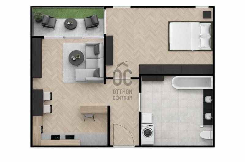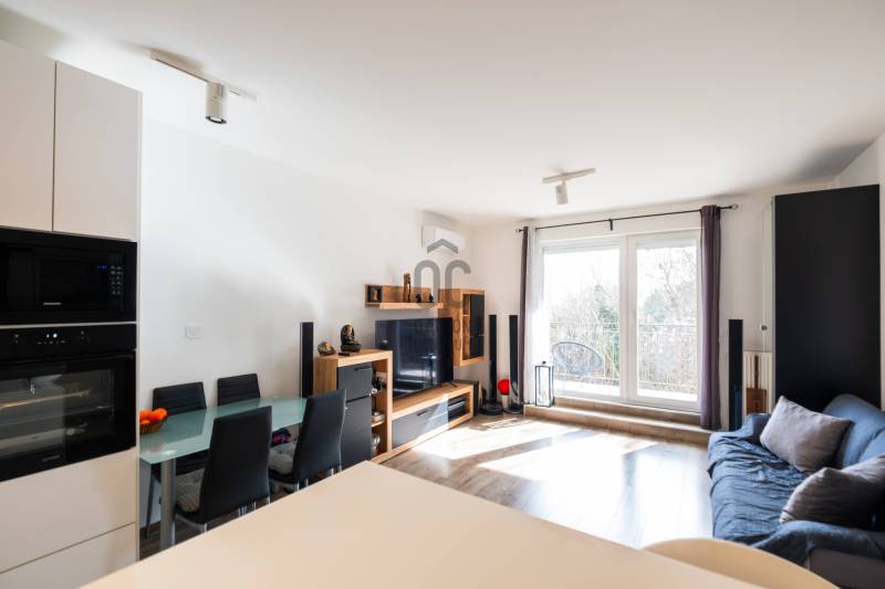 NYUGALOM ÉS VÁROSI KÉNYELEM TALÁLKOZÁSALAKÁSRÓL ÉS TÁRSASHÁZRÓL: 2020-ban épült, liftes modern társasház 3. emeletén található, kiváló állapotú, 50 m²-es nappali + 1 szobás lakás, amely ideális választás első lakásnak, pároknak vagy befektetésnek egyaránt.A lakás DK tájolású, ennek köszönhetően világos, napfényes terekkel rendelkezik, miközben a zöldre néző kilátás valódi nyugalmat biztosít a mindennapokban. A nappalihoz kapcsolódó 4 m²-es loggia tökéletes helyszín egy reggeli kávéhoz vagy egy hosszú nap utáni kikapcsolódáshoz.Korszerű műszaki tartalommal, modern kialakítással és alacsony fenntartási költségekkel rendelkezik.Elrendezése praktikus, jól bútorozható, terei élhetőek és otthonosak.MŰSZAKI TARTALOMRÓLAz ingatlan korszerű műszaki megoldásokkal rendelkezik: a kellemes hőérzetről energiatakarékos cirkó fűtési rendszer gondoskodik, melyet hűtő-fűtő klímaberendezés egészít ki.Háromrétegű, kiváló hő- és hangszigetelő képességű nyílászárókkal felszerelt, amelyek hozzájárulnak az alacsony fenntartási költségekhez és a csendes, nyugodt lakókörnyezethez.A modern, beépített konyhabútor gépesítve kerül átadásra, így az új tulajdonos azonnal használatba veheti az ingatlant.LOKÁCIÓA környék csendes, mégis kiváló infrastruktúrával ellátott. A belváros és a város további részei autóval és tömegközlekedéssel is gyorsan elérhetők; a közelben több buszjárat (237-es, 260-as és 218-as) biztosít kényelmes közlekedést.Ha egy modern, világos, nyugodt környezetben található, mégis jól megközelíthető otthont keres, ez a lakás ideális választás lehet.Ez az ingatlan a \"Hűség csomag\" megbízási portfólióhoz tartozik. Részletek az Otthon Centrum weboldalán.