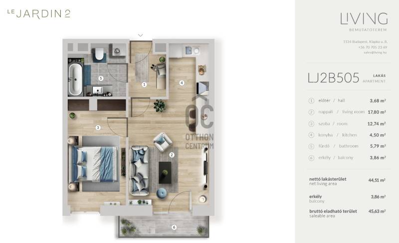 Projekt bemutatásaProjekt leírásA 147 lakásos My Garden 2 lakófejlesztés Budapest XIII. kerületének zöldövezeti részén, a Rákos-patak szomszédságában épül, ahol a modern élet és a természet harmóniája egyedülálló lakóélményt biztosít.A My Garden második ütem lakásai is magas szintű környezettudatosságot és kiemelkedő műszaki tartalmat képviselnek. Olyan fenntarthatósági megoldásokat alkalmazunk a lakóparkon, mint a megújuló energiaforrások, környezettudatos anyaghasználat, esővíz-újrahasznosítás, szelektív építési hulladékkezelés és felület hűtés-fűtés. A háromrétegű nyílászárók kiváló hő- és hangszigetelést biztosítanak, így a Le Jardin második ütemének lakásai alacsony fenntartási költségekkel és optimális komfortérzettel bírnak majd.A Váci úttól mindössze 10 percre található. A környék kifejezetten jó infrastruktúrával rendelkezik: oktatási intézményekben, bevásárlási lehetőségekben szociális-, sport- és egészségügyi létesítményekben bővelkedik a terület.A 6. emeleti penthouse lakásokból pazar kilátás nyílik a budai hegyekre, a kényelmet pedig biztosítja, hogy a nagy teraszon jacuzzi-nak kialakítható hely is található.A lakásokat átlagon felüli műszaki tartalom, energiahatékony- és gazdaságos üzemeltetés jellemzi.Környezettudatos beruházás, melynek részei a teljes mértékben- megújuló energián alapuló gépészeti megoldások,- a környezettudatos anyaghasználat,- a szelektív hulladékkezelés,- a környezettudatos vízfelhasználás,- az esővíz újrahasznosítása,- illetve a felület hűtés-fűtés.KÖZÖSSÉGI ELŐNYÖK:- közösségi nappali,- Business Corner,- közösségi BBQ hely,- fészer,- csomagpont.A fizetési ütemezés két részletben: 10% szerződéskötéskor és a fennmaradó 90% százalék a használatba vételi engedély kiadása után fizetendő a projektet finanszírozó bank felé.Átadás várható dátuma: 2027. II. negyedévTovábbi információért keressen bizalommal!