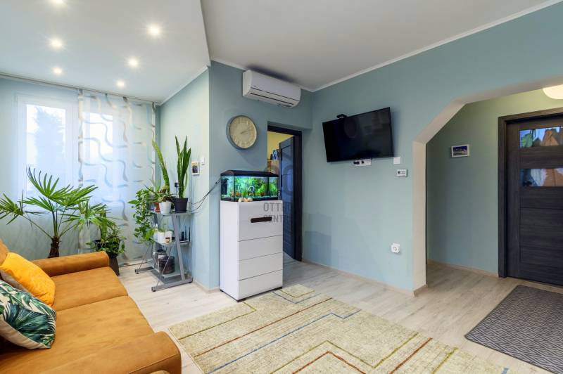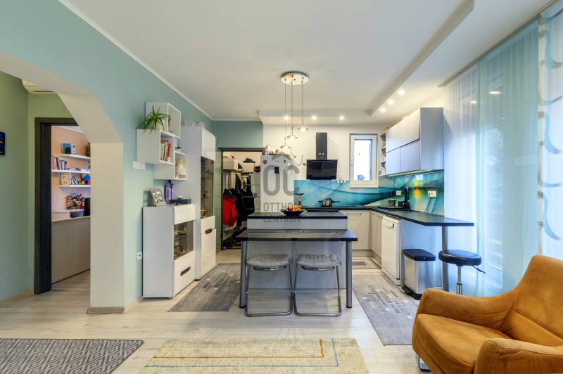 Eladó Mogyoród csendes környékén egy 95nm-es, kiváló állapotban lévő 4 szobás családi ház 493nm-es telken!Mogyoród Tölgyes-Boronka körzetében eladóvá vált egy igazán egyedi, csodás kerttel rendelkező modern és fiatal ház.Hogy miért is pont ezt válaszd?+ Egy szintes, 2020-ban épült téglából épült, önálló ház 15cm külső szigeteléssel.+ Teljes mértékben összközműves, gáz cirkó fűtéssel rendelkezik padló fűtéssel és minden helyiségben klímával.+ Rendkívül jó elosztású, amerikai konyhás-nappali + 3 hálószobával rendelkezik, így akár családosok is kényelmesen elférnek.+ Ideális elosztású, mivel a nappalin kívül még egy hálószoba is ki lett alakítva.+ A kerten található egy kiapadhatatlan fúrt kút, amihez egy komplett öntöző rendszer is ki lett építve.+ A telken elfér kényelmesen 2 autó és még 2 különálló tároló épület is helyett kapott. Végül a ház alatti egy fűtött pince is tartozik, ahol a hő központ lett kiépítve, de akár hobbi szoba is lehet belőle.+ A 20nm-es terasz ideális vendégek fogadására és emellett panorámás kilátással is rendelkezik.+ Amennyiben a házat bővítenéd, akkor jó hír, hogy a tetőtér beépíthető, hogy további lakórészt nyerhetsz.+ Modern nyílászárók, mai kornak megfelelő magas minőségű burkolatok és pompásan kihasználható gépesített konyha jellemzi a házat.+ Kiemelném a rendkívül kicsi rezsit, amit termel, mivel a téli hónapokban nincs 30.000 Ft/hó költsége.+ Igazán csendes, intim környezet, ami egy zsákutcában található. Bár földúton közelíthető meg, a lakók imádják a kevés szomszéd és tágas telkek miatt.+ A háztól gyalog 6 percre, 380 méterre található a Szentjakab HÉV állomás, amivel 30 perc alatt elérhető az Örs Vezér tér.+ Bár jogilag osztatlan közös tulajdonú ikerház, csak a tárolónál ér össze a két ház és két külön utcáról van a bejárás, így nem érintkeznek a lakók. Ez nem csak fizikailag van elszeparálva, de még érvényes megosztási szerződés is készült.+ Tulajdoni lap szerint \"Kivett lakóház, udvar\" megnevezésű belterületen, ami azt jelenti, hogy nemcsak, hogy hitelezhető, de még az Otthon Start, 3%-os hitelre is alkalmas ez a remek ingatlan.+ Tehermentes, 1/1-es tulajdonú és azonnal birtokba vehető.Ha békés és csöndes környékre vágysz, ahol egyre több az új építésű ingatlan, kell a 4 szoba és fiatal házat keresel, akkor itt a helyed!