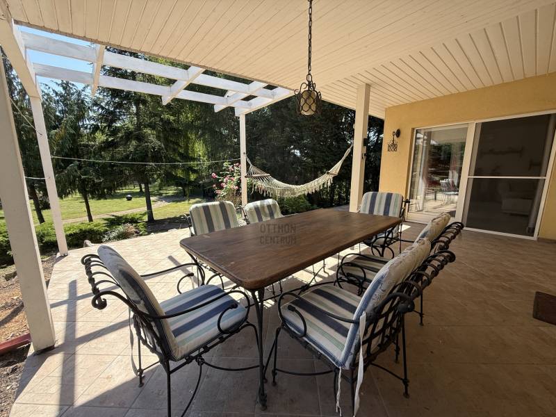Csak Nálunk, csak az OTTHON CENTRUMNÁL kínálom eladásra a képeken látható Rábapatonai családi házat.Ha igazán egyedi lehetőségekre vágysz! Varázslatos környezetben, domb tetején családi ház, tóra néző kilátással.És még a vállalkozásod is könnyen elfér az otthonodban, akkor most jól figyelj, mert ez a ház lehet hogy Neked szól.- 1600 m2-es telek- 90 m2-es lakótér + terasz + alagsor ami akár orvosi rendelőnek, kozmetikának, üzemnek vagy bármi új üzlet nyitására alkalmas!Vagy akár lakrész is kialakítható belőle, minden lehetőség adott! - a ház 1 hálószobával rendelkezik amihez tartozik egy fürdő illetve gardrób is.- kiváló elrendezés, világos terek- a nappaliból és a konyhából kijutunk a napsütötte teraszra, amiről télen nyáron páratlan kilátás nyílik a tóra és a mesés, impozáns telekre - klimatizált- az otthon melegét padlófűtés biztosítja- a ház könnyűszerkezetes, német prémium minőségű kivitelezés - modern, műszaki kivitelezés miatt a ház fenntartása nagyon minimális- elektromos kapu- meseszerű, parkosított udvarA ház kiváló állapotú, ráfordítás mentesen azonnal költözhető, birtokba vehető!Ha szeretnéd érezni a természet közelségét ebben a szép és élhető terekkel rendelkező családi házban, hívj és mutatom, elérhető vagyok a hét mindennapján!Hitelre van szüksége?Az Otthon Centrum az ország egyik legnagyobb és legmegbízhatóbb hitelközvetítőjeként,teljes körű és díjmentes hitelügyintézéssel, biztosításkötéssel áll rendelkezésére!Kérje személyre szabott ajánlatunkat Kollégáinktól!