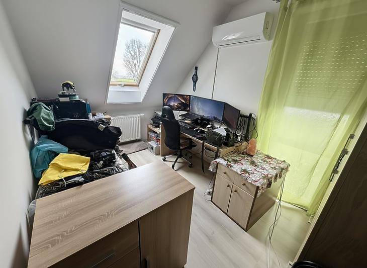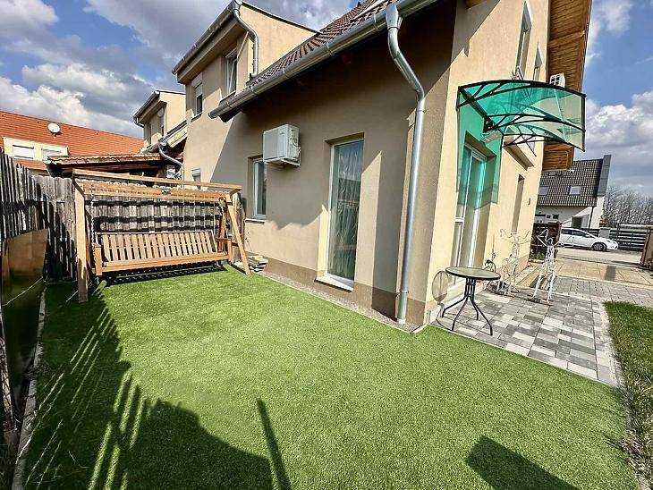 Vác kedvelt, nyugodt részén, a Csendesréti lakóparkban kínálunk megvételre egy 2018-ban épült, igényesen kialakított, belső kétszintes lakást. A lakópark kifejezetten családias hangulatú, barátságos közösséggel. Az ingatlan remek elosztású: az alsó szinten egy tágas előszoba fogad, innen nyílik az amerikai konyhás nappali, 2 kamra, valamint egy vendég WC. A nappaliból közvetlen kijárat vezet a teraszra, valamint az elkerített saját kertbe.Az emeleti szinten három külön nyíló szoba, egy WC-vel ellátott fürdőszoba, valamint egy padlástér található, amely kiválóan alkalmas tárolásra. A lakás műanyag nyílászárókkal rendelkezik az alsó szinten, az emeleten pedig dupla üvegű fa nyílászárókkal van ellátva, minden ablak redőnnyel és szúnyoghálóval felszerelt, a fűtést kondenzációs gázkazán biztosítja radiátoros hőleadással, valamint három darab hűtő-fűtő klíma gondoskodik a komfortérzetről mindkét szinten. Az épület kiváló hang- és hőszigeteléssel rendelkezik (Silka falazat, 12 cm szigetelés), a lakáshoz pedig saját parkolóhely is tartozik, az udvarban 2 autónak van hely biztosítva, az utcán szintén további 2 hely biztosított parkolásra. Az autópálya közelségének köszönhetően a közlekedés gyors és kényelmes, akár Budapestre ingázóknak is tökéletes.A buszmegálló körülbelül 500 méterre található, így gyalogosan is könnyen és gyorsan megközelíthető. A vasútállomás nagyjából 1,5 kilométerre helyezkedik el. Ennek köszönhetően a tömegközlekedés is kiváló és kényelmes megoldást nyújt.Kérdésével, illetve megtekintési szándékával keresse irodánkat.Amennyiben hitelre lenne szükségük új otthonuk megvásárlásához, profi hitelközvetítő kollégáink díjmentesen állnak rendelkezésükre.
