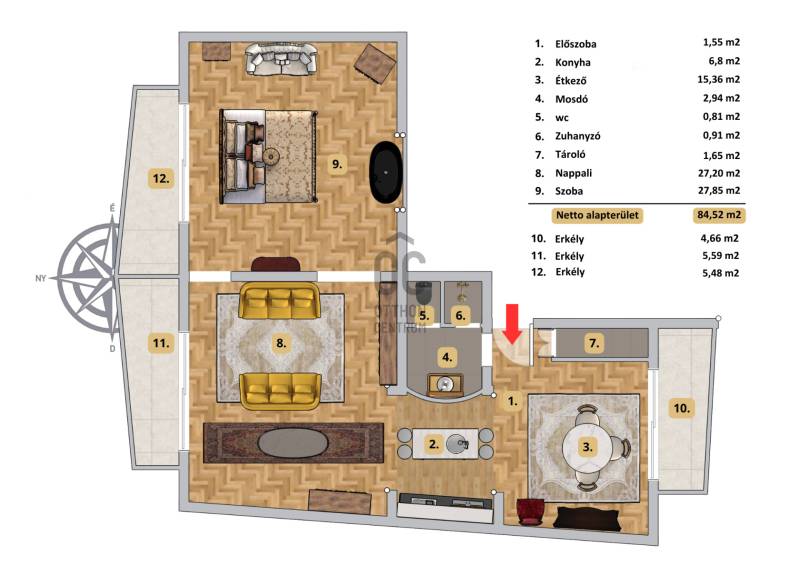 Budapest I. kerületében, a Naphegyen keresi új tulajdonosát egy nettó 84 m2-es lakótérrel és 3 db összesen 16 m2-es erkéllyel, tágas és világos terekkel rendelkező, örök panorámás lakás. Ha NÍVÓS KÖRNYÉKEN szeretné megtalálni új otthonát, értékeli a zöld környezetet és a belváros közelségét, akkor ezt a különleges lakást feltétlenül nézze meg!** KÖRNYÉK ÉS KÖZLEKEDÉS **- I. kerület, Naphegy, KÖZPONTI elhelyezkedésű CSENDES utca.- Átmeneti zóna a Gellérthegy természetesebb, zöld részei és a Naphegy városiasabb, infrastruktúrában gazdag területe között.- PRÉMIUM TERÜLET, a Gellért park, Hováth-kert, a Czakó kert és a Déryné közvetlen közelében.- A helynek van történelmi és esztétikai értéke is, ami plusz élményt ad a hétköznapokban.- A lakástól néhány perc alatt elérhető minden, ami a hétköznapokhoz szükséges.- Közelben bölcsőde, óvoda, Kormányablak, Önkormányzat, gyógyszertár, posta, bankok és szolgáltatók sokasága.- A Gellérthegy kiváló hely sétákra, kirándulásra, sportolásra ott a Tabán, az Oxigén wellness és a kerületi lakosoknak díjmentes Czakó Szabadidőközpont.- A közlekedés jól kiépített a környéken, a Dózsa György Tér, Naphegy Tér, Krisztina Tér – autóbuszokkal, villamossal, metróval is elérhető.- A Krisztina téri közlekedési csomópont és a Dózsa György tér a lakástól 3 perces sétatávolság, így a belváros is könnyen megközelíthető.- Parkolás szempontjából a környező utcák mindegyike fizető övezetes, de bejelentett lakcím esetén, kerületi parkoló kártya éves ötezer forintért kiváltható.** AMIT A HÁZRÓL TUDNI KELL **- 1960-ban épült, 10 lakásos, rendszeresen karbantartott társasház.- Korai modern stílusú, szépen KARBANTARTOTT ÉPÜLET külső és belső homlokzata jó állapotú, lépcsőháza rendezett.- A ház műszakilag is karbantartott.- Lakóközössége barátságos, befogadó, családias közösség.** MIÉRT IDEÁLIS A LAKÁS? **- Második emeleti, 84 m2 lakóterű és 3 db összesen 16 m2-es erkélyes, 2 szobás, VILÁGOS ÉS TÁGAS terekkel rendelkező, ingatlan.- A lakást egyedi mennyezeti és falfestések, gránit és márvány pultok díszítik, amik magas minőséget képviselnek.- Tájolása nyugati, hatalmas fából készült nyílászáróinak köszönhetően az élettér jó fényviszonyokkal rendelkezik.- Felosztása: előszoba, háztartási helyiség, fürdőszoba, konyha, étkező, nappali és hálószoba, plusz 3 db erkély.- Az egyedileg tervezett és gyártott, gránit munkalapos konyhabútor a lakás stílusának megfelelő dizájnnal rendelkezik.- Modern konyhagépekkel, egyedi pultba épített hűtőkkel felszerelt, minden igényt kielégít.- Az előszobából nyíló háztartási helyiségben kapott helyet a mosógép és a vízmelegítő bojler.- A fürdőszoba hidegburkolattal a többi helyiség elegáns és időtálló, fa parkettával burkolt.- A kétrétegű, hőszigetelt, fából készült nyílászárók könnyen mozgathatóak.- Minden helyiségben elektromos padlófűtés lett kialakítva, ami egyenletes hőmérsékletet biztosít a hidegebb napokon is.- Az étkező részben egy hűtő-fűtő klíma is rendelkezésre áll.- Közös költség 25 000 Ft/hó, amely tartalmazza a vízdíjat, lépcsőház takarítását és a szemétszállítást is.- A lakásban található teljes beépített bútorzat a vételár részét képezi.- A társasház pincéjében egy 5 m2-es zárható tároló is a lakáshoz tartozik.** A LAKÁS MEGTEKINTHETŐ **- Személyesen, előre egyeztetett időpontban,- 3D webséta segítségével, kényelmesen, akár otthonról is.** FINANSZÍROZÁSI KÉRDÉSEKBEN– ONLINE IS – SEGÍTÜNK **- Bank-független hitelcenterünk díjmentesen versenyezteti az összes bank és hitelintézet ajánlatát.- Önnek csak annyi a dolga, hogy egyeztet munkatársunkkal, majd kiválasztja a hosszú távon is legkedvezőbb konstrukciót.- Szakértőink 20 év tapasztalattal, fogyasztóbarát lakáshitelekkel, babaváró hitellel és teljes körű CSOK Plusz és OTTHON START program ügyintézéssel várják.- Időpont-egyeztetéssel munkaidő után is elérhetők.Ha egy stílusos, várra néző örök panorámás, különleges otthont keres prémium környéken — ami valóban más, mint a megszokott ’kirakatlakások’ — ezt érdemes személyesen is megismernie. Tágas, világos terek, egyedi alaprajz várja — zöldövezetben, mégis a belváros közelében. Ritka lehetőség, ne hagyja ki!Érdeklődés esetén VÁROM HÍVÁSÁT a hét minden napján! Kérdéseire szívesen válaszolok.