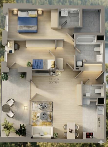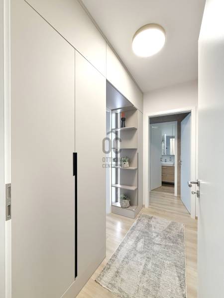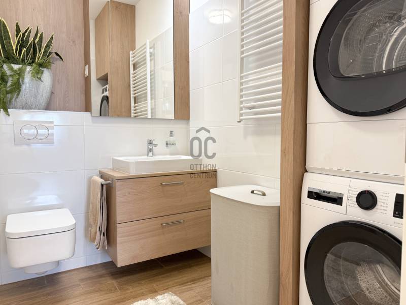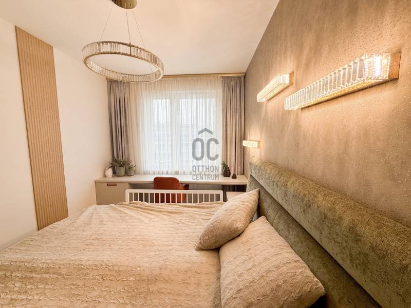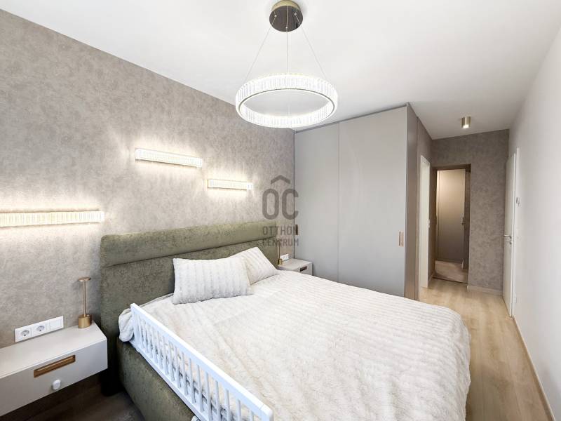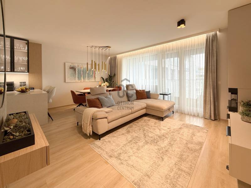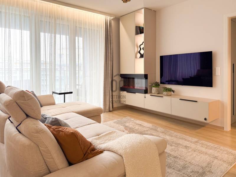 Budapest közkedvelt Duna-parti lakóparkjában, a Marina parton, 2024-ben átadott társasház 7. emeletén, 78 m² alapterületű + 12 m² terasszal rendelkező, duplakomfortos (kádas és zuhanyzós fürdőszoba is) prémium minőségű, letisztult, modern és fiatalos otthon eladó. Ide tényleg csak bőröndöt kell hozni, a teljes bútorzat a lakás - és a vételár részét képezik. FŐBB JELLEMZŐK- 78 m² alapterület - nappali + 2 hálószoba + gardróbszoba - 7. emelet + nyugati tájolás - sok természetes fény - 2 fürdőszoba - duplakomfort, továbbá külön WC+kézmosó helyiség- A teraszra érve valóban zöld és csendes környezet fogad minket- Átgondolt, praktikus belsőépítészeti megoldások, beépített bútorok- Okosotthon rendszer - a modern életre tervezve- Elektromos redőnyök + szúnyogháló minden nyílászárón - A lakáshoz opcionálisan 2 db teremgarázs hely + tároló vásárolható a vételáron felülDUNA TERASZ GRANDE – Modern technológia és szolgáltatási szint- Mennyezeti hűtés-fűtés- A+ energetikai besorolás- 0–24 órás, recepció szintű portaszolgálat és csomagpont- Panorámás közösségi tetőteraszok (jóga, napozó, grill)- Játszótér és sportolásra alkalmas közösségi terekA fejlesztés nem csupán lakásokat, hanem magas szintű életminőséget kínál.XIII. MARINA PART - kivételes lokáció a belvároshoz közelAhol a Duna-parti elegancia és a belváros közelsége egységet alkot.A budapesti Duna-part egyik legkeresettebb és legexkluzívabb lakónegyede a XIII. kerületben elhelyezkedő Marina part, ahol a vízparti életérzés és a modern nagyvárosi dinamika páratlan összhangban találkozik. A panoráma, a gondosan parkosított, igényesen kialakított környezet, valamint a magas presztízsű építészeti megoldások olyan életteret teremtenek, amely a kompromisszummentes életminőséget képviseli. Ez a környezet azok számára ideális, akik számára az elhelyezkedés, az esztétikum és a prémium komfort egyaránt alapvető elvárás.A Marina part elhelyezkedése egyedülállóan kedvező:- 10–15 perc autóval a belváros- 15–20 perc tömegközlekedéssel (M3 metró, villamos, busz)- 20–25 perc kerékpárral a Parlament vagy a Nyugati tér környékéreAmennyiben egy valóban különleges, vízparti presztízs-ingatlant keres, amely értékálló befektetés és egyben életstílus-választás is, örömmel állok rendelkezésére.