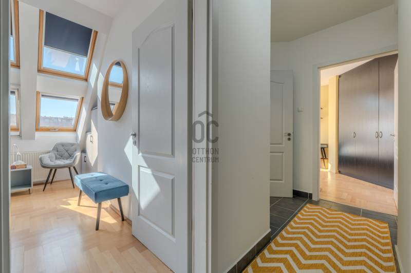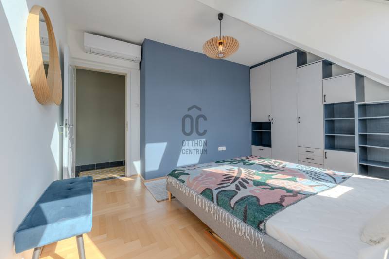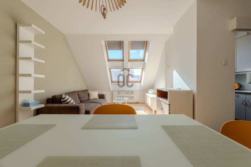 Élj a pezsgés központjában! – Design lakás a Gozsdu Udvarnál Eladó egy világos, nettó 65 nm-es, 3 szobás otthon Budapest legmenőbb negyedében, a VII. kerületi Holló utcában! Ez az ingatlan nem csupán egy lakás, hanem egy belépő a főváros lüktető szívébe.Az ingatlanról: Stílus és kényelemA lakás a társasház 5. emeletén (tetőtér) található, így a város felett, mégis a sűrűjében élhetsz.Elrendezés: Tágas, amerikai konyhás nappali + 2 külön nyíló szoba.Állapot: Jó állapotú, minimalista design, ami azonnal költözhető.Extrák: Klíma a nyári hőség ellen, házközponti fűtés a téli estékre.Biztonság: 24 órás portaszolgálat és biztonsági ajtó vigyáz rád.Akadálymentes: Modern lift és könnyű megközelíthetőség.Ahol a világ találkozik: Belső-ErzsébetvárosHa ide költözöl, felejtsd el az autót! A környék a főváros turisztikai és kulturális epicentruma.Buli negyed & Gozsdu: A lakás a híres Gozsdu udvar közvetlen szomszédságában található. A legjobb romkocsmák, speciality kávézók és street food helyek szó szerint a lábaid előtt hevernek.Infrastruktúra: Pár perc sétára minden megtalálható: élelmiszerüzletek, drogériák, edzőtermek és galériák.Közlekedés: Kitűnő csomópont! Az M1, M2, M3 metróvonalak (Deák Ferenc tér), valamint a 47-49-es villamosok és éjszakai járatok pillanatok alatt elérhetőek. Bárhová is mész a városban, innen te érsz oda a leggyorsabban.Miért válaszd ezt a lakást?Ez az otthon tökéletes választás, ha imádod a városi nyüzsgést, de a lakásodba belépve egy csendes, világos és biztonságos menedékre vágysz. Befektetésnek is kiváló, hiszen a környék idegenforgalmi értéke miatt a lakás kiadhatósága kiemelkedő.Ne maradj le róla! A belváros ezen része sosem megy ki a divatból.Szeretnéd élőben is látni?Kérdésed van, vagy megtekintenéd az ingatlant? Keress bizalommal, és mutatom az utat az új életedhez!