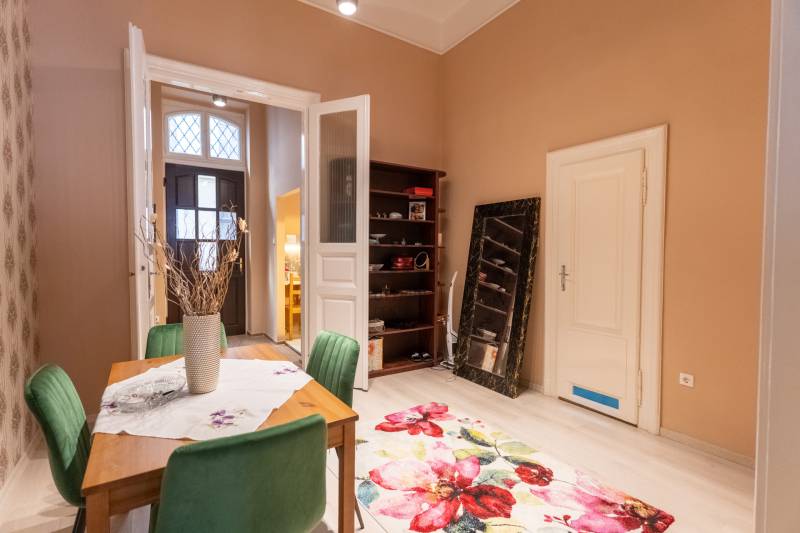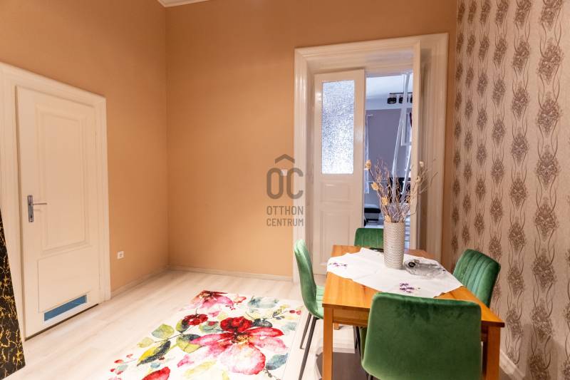 Reggel kávé a közeli Hunyadi téren, napközben a város pezsgése, este pedig csend és elegancia – ez a lakás ezt az életérzést adja. Az a ritka otthon, amely egyszerre inspiráló, nyugodt és értékálló, és ahol a belvárosi élet minden előnye kézzelfogható közelségben van.A VII. kerület egyik legkeresettebb részén, a Király utcában, a Hunyadi tér közvetlen közelében kínálunk megvételre egy kivételes hangulatú, nagypolgári lakást.A LAKÁS:-61 m²;-2 szoba;-2. emelet;-Utcai nézet, délnyugati tájolás;-Liftes épület-Kiemelkedően jó benapozottság;-398 cm belmagasság – nagypolgári terek;-20.000 Ft közös költség;-Elektromos kályha fűtés;-A konyhából könnyen kialakítható egy 3. szoba.A HÁZ:-Millenniumi Budapest építészete;-Liftes társasház;-Szép, karbantartott belső homlokzat, elegáns belső udvar;-Rendezett, díszes külső homlokzat;-1897-ben épült társasház.LOKÁCIÓ:- Erzsébetváros dinamikusan fejlődő, értékálló része;- Éttermek, kávézók, design üzletek, galériák és kulturális helyszínek a közvetlen közelben;- Erős bérbeadási potenciál;- Kiváló infrastruktúra: bevásárlási lehetőségek, gyógyszertár, egészségügyi szolgáltatások, iskolák;-2 perc sétára a Hunyadi tér.KÖZLEKEDÉS:-70, 78 trolibusz – 1 perc;-4–6-os villamos (Király utca / Erzsébet körút megálló) – 2 perc;-M1 metró (Vörösmarty utca) – kb. 5 perc;-M3 metró (Nyugati tér) – kb. 15 perc.EGYÉB ÉRDEKESSÉGEK:- A ház tervezője Jahn József;- Jahn József több hasonló, reprezentatív pesti bérházat tervezett, és a ház a kor magasabb polgári rétegének készült.Ha olyan otthont keresel, ahol a belvárosi élet pezsgése és a nyugodt, elegáns mindennapok egyszerre elérhetők, ezt a lakást érdemes személyesen is megtapasztalnod. Itt minden adott ahhoz, hogy a város energiája inspiráljon, miközben egy valódi, szerethető otthon vár rád.Az ilyen karakteres, napfényes otthonok Erzsébetvárosban gyorsan gazdára találnak. Ne maradj le róla – vedd fel velem a kapcsolatot, és nézd meg élőben, mielőtt más dönt helyetted.Egyedi igényekre szabott lakáshitelekkel állunk rendelkezésére.Bankfüggetlen hitelcentrumunk az országban elérhető összes bank és hitelintézet ajánlatát versenyezteti az Ön számára díjmentesen.Munkatársaink nagy szakmai tapasztalattal várják Önt az előre egyeztetett időpontban akár a normál munkaidő után is.