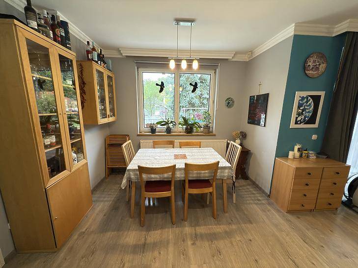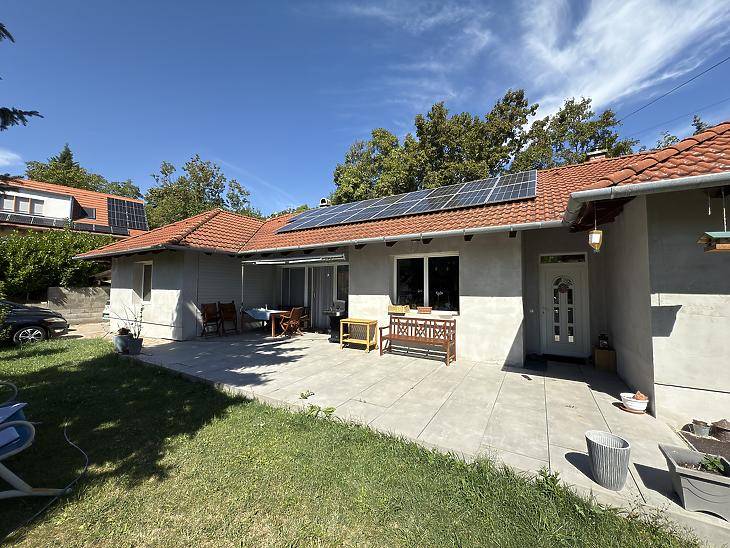 ELADÓ ÖNÁLLÓ, EGYSZINTES CSALÁDI HÁZ SZENTENDRÉN, A TYÚKOSDŰLŐN!KÖRNYEZET, ELHELYEZKEDÉSAz ingatlan Szentendre egyik csendes, nyugodt részén, a Tyúkosdűlőn található. Ideális választás mindazok számára, akik a természet közelségét keresik, mégis fontos számukra a jó megközelíthetőség.A buszmegálló mindössze 10 perc sétára van, ahonnan könnyedén elérhető Szentendre központja, valamint Budapest is.A HÁZ JELLEMZŐI- Lakóterület: 125 m²- Telek mérete: 1040 m²- Önálló, egyszintes kialakítás- Építés éve: 2000- Összközműves ingatlanMűszaki tartalom:- 38-as Porotherm tégla falazat- 10 cm kőzetgyapot homlokzati szigetelés- BRAMAC betoncserép tetőfedés- Vasbeton födém, 10 cm kőzetgyapot szigeteléssel (részben deszkázott)- 5 cm lépésálló szigetelés az aljzatban- Kétrétegű, hőszigetelt műanyag nyílászárók- 3x16 A elektromos hálózatGépészet és extra felszereltség:- Kondenzációs kombi gázkazán, vörösréz csövezéssel- 300 literes puffertartály- 5,8 kW-os napelemes rendszer (még 7 évig szaldó elszámolással)- Energetikai besorolás: A+- Elektromos padlófűtés a konyhában- RiasztórendszerKert és parkolás:- Esővíz gyűjtésére alkalmas, 3 m³-es ciszterna- Polikarbonát fedésű dupla kocsibeálló- További 3–4 autó parkolása megoldható telken belülFenntartási költség:- Rendkívül kedvező rezsi: kb. 12.000 Ft/hóFINANSZÍROZÁSAz ingatlan banki hitellel is megvásárolható, melyben irodánk díjmentes tanácsadással segíti Önt.Vevőink részére a közvetítés díjtalan!A hirdetésben szereplő adatok tájékoztató jellegűek.