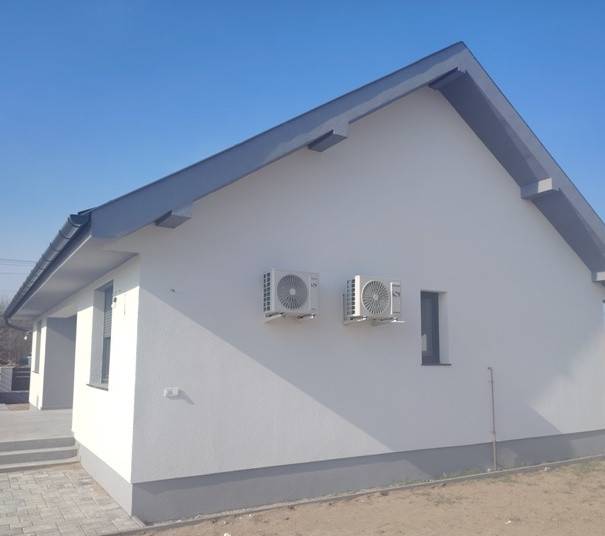 Dabason, rendezett környezetben értékesítésre kínálok egy 87 m2-es önálló családi házat. Az épület új, lakhatási engedéllyel rendelkezik. Beton alapon B30-as Leier téglából épült, a tető héjazata betoncserép. A külső falak 10 cm hungarocell szigetelést kaptak , a nyílászárók 3 rétegű műanyagok, melyek alumínium redőnyökkel ellátottak. A nappalinál elektromos redőny szolgálja a kényelmet, innen ki lehet menni a teraszra is. A fűtés Vaillant gázkazánnal, padlófűtéssel lett kialakítva, de 3 db hűtő-fűtő klíma is beszerelésre került. A szobák laminált padló burkolata 8000 Ft/ m2-ig választható egyéni ízlés szerint. A közművek közül villanny, fúrt kúttal és zárt emésztővel rendelkezik. Az utcában nem elérhető a vezetékes víz és a csatorna. A kapu elektromos működtetésre előkészítve. A házban riasztó rendszer helye ki lett építve. Megtekinthető a hét bármely napján: Antal Krisztina 06204004014