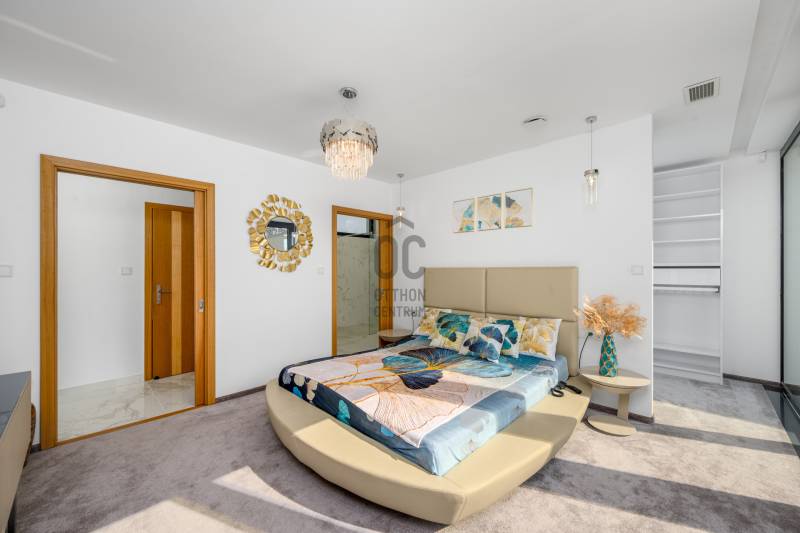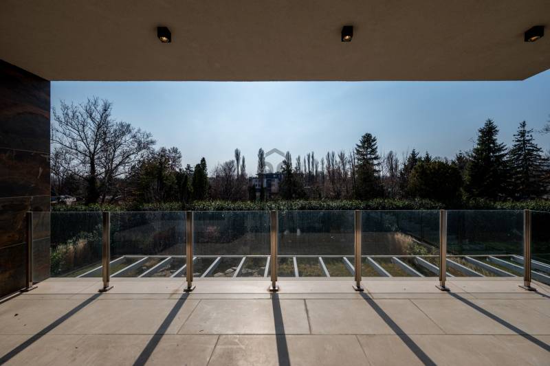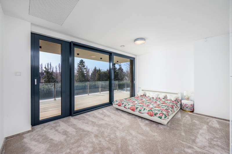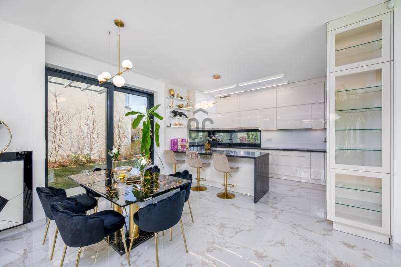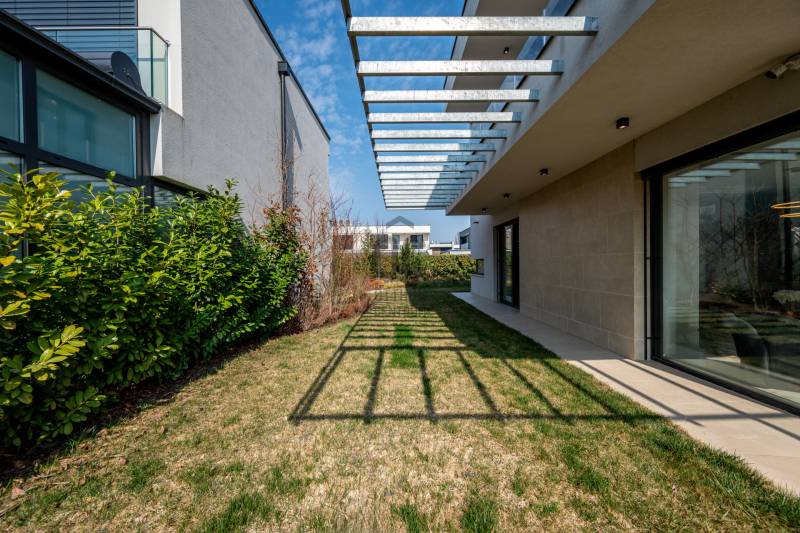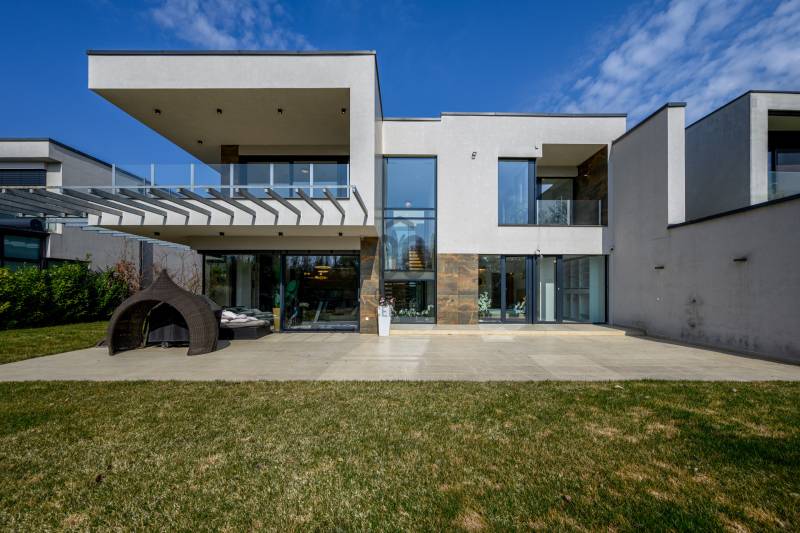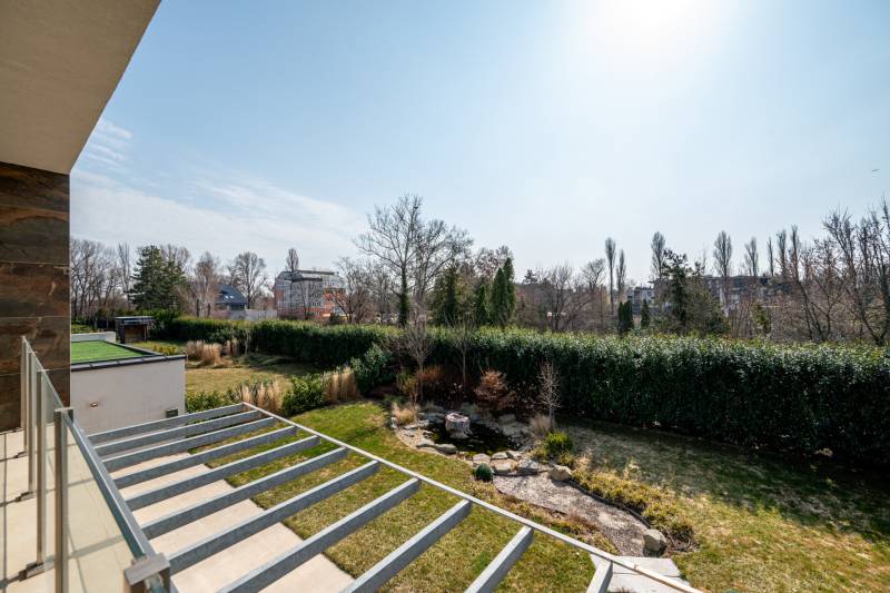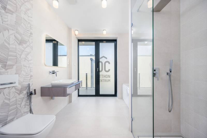 Budapest III. kerületének egyik legexkluzívabb, Duna-part közeli lakóparkjában, a The Village lakóparkban kínálunk megvételre egy különleges, minden részletében prémium minőségben kialakított luxusvillát.A közel 27.664 m² parkosított zöldterületen elhelyezkedő, zárt és őrzött lakópark a természet közelségét és a modern városi élet kényelmét ötvözi. A Duna-part néhány lépésre található, a gondosan megtervezett kert, a japán zen hangulatú park és az elegáns lakókörnyezet nyugodt, privát életteret biztosít a lakók számára.A kb. 800 m²-es telken álló, háromszintes villa közel 300 m² lakóterülettel, 60 m² terasszal és 42 m² erkéllyel rendelkezik. A ház terei nagyvonalúan megtervezettek, világosak és elegánsak, a belső kialakítás során pedig minden részletnél a minőség és az időtálló design volt a meghatározó.A földszinten egy tágas, egy légterű nappali–étkező–konyha kapott helyet, amely közvetlen kapcsolatban áll a terasszal és a kerttel. A prémium kategóriás konyha felsőkategóriás AEG beépített gépekkel, borhűtővel, corian munkalappal és egyedi tervezésű konyhabútorral készült. A nappali eleganciáját egy modern biokandalló emeli ki.Az emeleten három kényelmes méretű hálószoba, gardrób és két fürdőszoba található, amelyekhez erkélyek kapcsolódnak. A földszinten külön szülői lakrész biztosítja az intim, nyugodt privát teret saját gardróbbal és fürdőszobával.A garázsszinten kétállásos, fűtött garázs kapott helyet elektromos autó töltési lehetőséggel, valamint tároló, mosókonyha, gépészeti helyiség és egy hobby szoba is kialakításra került.A villa műszaki felszereltsége a legkorszerűbb technológiát képviseli. A LOXONE okosotthon rendszernek köszönhetően a ház számos funkciója – például a fűtés-hűtés, világítás vagy egyéb rendszerek – akár telefonról is vezérelhető, így a mindennapi kényelem és energiahatékonyság maximálisan biztosított.A komfortot többek között az alábbi rendszerek szolgálják:- Mitsubishi Zubadan hőszivattyú- mennyezeti hűtés-fűtés és padlófűtés- fan-coil rendszer- teljes szellőztető rendszer- Schüco alumínium, háromrétegű üvegezésű nyílászárók- riasztó- és kamerarendszerA kertben egyedi tervezésű japán zen kert található kerti tóval, automata feltöltő és öntözőrendszerrel, valamint hangulatos kertvilágítással, amely különleges atmoszférát teremt.A lakópark lakói számára közösségi épület és nagyméretű medence is rendelkezésre áll, valamint wellness részleg kialakítása is folyamatban van. A terület biztonságáról 24 órás portaszolgálat és sorompós beléptetés gondoskodik.Ez az ingatlan ideális választás mindazok számára, akik a Duna közelségében, elegáns és biztonságos környezetben keresnek különleges otthont, ahol a természet nyugalma és a városi élet kényelme egyszerre van jelen.További információért és megtekintéssel kapcsolatban keressen bizalommal.