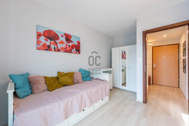 A XIII. kerületben, a Teve utcában, kiváló közlekedéssel, mégis nyugodt, rendezett környezetben, a SIDI ANGEL lakóparkban kínálunk eladásra egy praktikus elrendezésű, 54 m²-es, újszerű állapotú 3 szobás, 6. emeleti lakást.Jellemzők:*2016-os építésű, modern társasház*korszerű, igényes burkolatok*gépesített konyha (sütő, hűtő, főzőlap, mosogatógép és mosógép)*a teljes bútorzat a vételár része, így a lakás akár azonnal birtokba vehető és költözhető*a teraszajtókon pliszé szúnyogháló találhatóMűszaki felszereltség:*Fűtés: házközponti fűtés egyedi méréssel, kedvező fenntartási költségekkel*Hűtésről: 2 db inverteres hűtő–fűtő split klíma gondoskodikA lakás elosztása kiemelkedően praktikus:*amerikai konyhás nappali - 19,88 m2*hálószoba - 10,5 m2*hálószoba - 9,8 m2*fürdőszoba - 3,4 m2*külön WC - 1,5 m2*előszoba - 8,9 m2*a 2 hálószobából nyíió franciaerkéllyelA lakáshoz tartozik egy tágas (15,53 m²) teremgarázs hely, amely könnyen parkolható, és rendkívül jól pakolható. A parkoló mellett közvetlenül található egy használaton kívüli „menekülési útvonal”, amely extra helyet biztosít, így nagyobb tárgyak (pl. babakocsi, kerékpár) oldalról történő pakolása is kényelmesen megoldható.A közös költség: 25.118 Ft/hó.A lakás tehermentes és azonnal költözhető, így ideális választás saját részre vagy akár befektetésnek is, mivel könnyen kiadható magas hozammal.A társasház rendezett, újszerű és akadálymentesített.Környék:*Angyalföld a XIII. kerület dinamikusan fejlődő városrésze, amely modern lakóépületeivel, parkjaival és szolgáltatásaival egyre népszerűbb lakóhely Budapesten.*A kiváló közlekedési kapcsolatok, bevásárlási lehetőségek és közeli irodaházak miatt különösen vonzó a fiatal, aktív életmódot folytatók számára.Közlekedés autóval*Az ingatlan a Váci út és az Árpád híd közelében található, így a belváros és a budai oldal gyorsan elérhető.*A Hungária körút és az Árpád híd néhány perc alatt megközelíthető, jó kapcsolatot biztosítva a város fő közlekedési útvonalaihoz.*Az M3 autópálya bevezető szakasza könnyen elérhető, így az agglomeráció irányába is gyors a kijutás.Közlekedés tömegközlekedéssel*legközelebbi buszmegálló (15, 115 busz) kb. 150 méterre található, amely közvetlen kapcsolatot biztosít többek között a Nyugati pályaudvar irányába.*A Göncz Árpád városközpont közlekedési csomópont kb. 500–600 méterre található, ahol az M3 metró, valamint több buszjárat (32, 34, 106 stb.) érhető el.*Az 1-es villamos megállója szintén a Göncz Árpád városközpontnál található, kb. 500 méterre, amely gyors körirányú kapcsolatot biztosít a város számos pontjára.Bevásárlási lehetőségek a közelben*Westend City Center – kb. 2 km*Lehel Csarnok – kb. 1,7 km*A Váci úti irodafolyosó mentén több élelmiszerüzlet (SPAR, Lidl, Tesco Express) 300–800 méteren belül elérhető.Óvodák és bölcsődék*Teve utcai Bölcsőde – kb. 200 m*Vizafogó Óvoda – kb. 600 m*Pitypang Óvoda – kb. 700 mIskolák*Herman Ottó Általános Iskola – kb. 900 m*Berzsenyi Dániel Gimnázium – kb. 1,3 km*Budapesti Gazdasági Egyetem – kb. 1,5–2 km (több kar a közelben)A strandot kedvelőknek a Dagály fürdő 1,2 km-re található.A lakás ára: 104.990.000 FtA garázs ára: 9.990.000 Ft (a lakással együtt vásárolandó)Egyedi igényekre szabott lakáshitelekkel állunk rendelkezésére. Bankfüggetlen hitelcentrumunk az országban elérhető összes bank és hitelintézet ajánlatát versenyezteti az Ön számára díjmentesen. Munkatársaink nagy szakmai tapasztalattal várják Önt az előre egyeztetett időpontban akár a normál munkaidő után is.Bővebb információért és a megtekintéssel kapcsolatban hívjon bizalommal!
