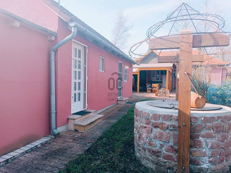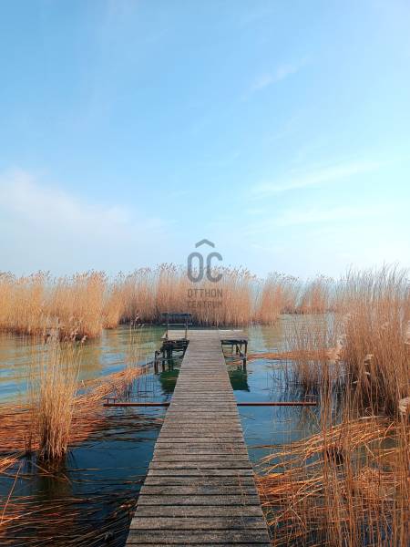 Ábrahámhegy egykori kikötőépülete egy kő falazatú kis villaépület volt a századfordulón. A régi térképek tanulsága szerint ezen épülettel szemben indult azon kijáró, amelyről a vízi szállítást akkortájt megoldották.Ezen épület ma már egészen más arcát mutatja, bár a szemfülesek megtalálják benne azon részleteket, amelyek tanúskodnak az akkori építőmesterségről, a telek pedig mit sem változott azóta, most is a Balaton partjáig fut, saját stéggel a végén.A vastag falazaton belül ma már egy teljesen felújított, modern, tágas és napfényes lakóházat találunk, amelynek a belmagassága 290 cm! A lakóépület hasznos alapterülete 56 nm, amelyben tágas nappali, napfényes étkező és két nagy hálószoba kapott helyet a konyha és a fürdőszoba mellett.A bejárat előtt kényelmes, árnyas, fedett, 22 nm-es teraszt alakítottak ki, ahol egy egész család és a vendégsereg elfér.A telken egy konyhával, fürdőszobával felszerelt vendégház is van, valamint háztartási helyiség és egy tágas, mindent elnyelő tároló a csónakoknak, kajakoknak, és minden egyéb vízi és szárazföldi felszerelésnek.A telek egy almafás gyümölcsössel folytatódik, majd a nádas felé még egy zárható vízieszköz-tároló található. A saját, kizárólagos használatú 12 nm-es engedélyes stég végül a nyílt Balaton felé enged szabad utat. A terület 1462 nm-es, Üh-01-es besorolás alá esik, így 15%-ban beépíthető!A mai kívánalmaknak megfelelően az ingatlan technikai jellemzői is garantálnak minden kényelmet:Garázsépület, kövezett bejáró, távirányítós tolókapu, központi kódos zárrendszer, öntözőberendezés a teljes kertben, teraszlezáró rolórendszer, központi gázfűtés, hűtő-fűtő klímák minden helyiségben, spotlámpás világítórendszer, felszerelt konyha, mosó- és szárítógép, hőszigetelt falak, 3 rétegű thermo nyílászárók, mindez szinte új állapotban!Az ingatlan egyedülálló a maga nemében! Horgászoknak, horgásztatóknak, horgászegyesületeknek és Balatonimádóknak kihagyhatatlan lehetőség!