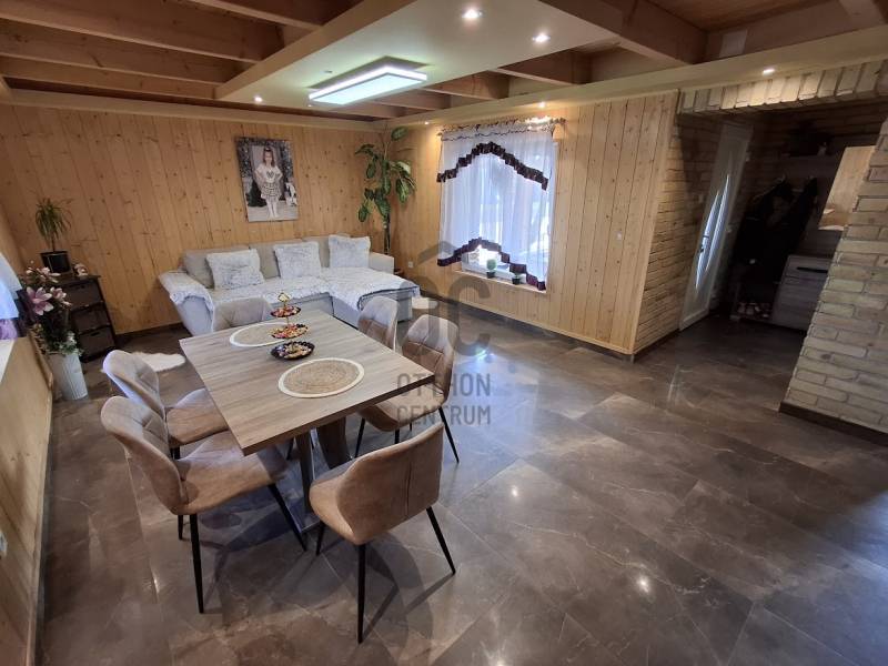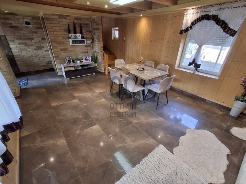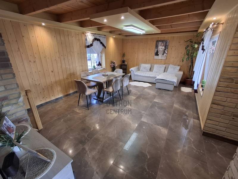 Az Otthon Centrum kínálatában eladó egy 2341 nm-es, összközműves telken elhelyezkedő, 5 éve bővített és korszerűsített családi ház.Főbb jellemzők: - vegyes falazatú, az eredeti épület vályog- a hozzáépített rész tégla, 15 cm-es hungarocell szigeteléssel ellátva- a fűtést Baxi kondenzációs kazán biztosítja, padlófűtéses hőleadással- a korszerű műanyag nyílászárók hozzájárulnak az energiahatékony működéshezHelyiségek elosztása: - Földszint: nappali–étkező, előszoba, konyha, mosókonyha- Emelet: 3 hálószoba, fürdőszoba WC-vel, hatalmas teraszA telek méretéből adódóan számos lehetőséget kínál további fejlesztésre, kert kialakítására vagy egyéb hasznosításra.További információért és megtekintésért keressen bizalommal!