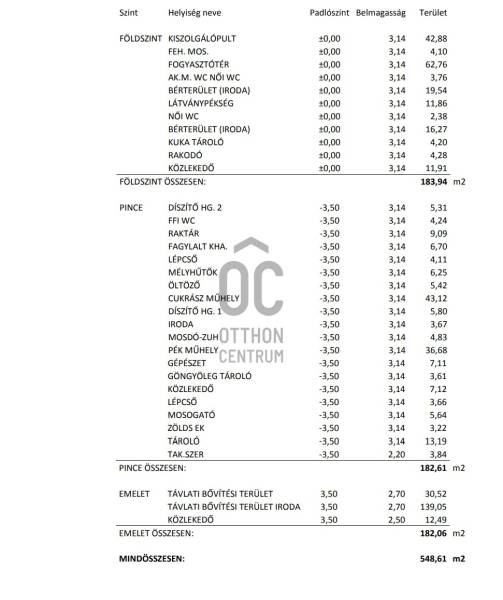 ELADÓ 2015-ben épült összesen 548 nm üzleti ingatlan a 3. kerületben, melyben helyet kapott:- egy modern pizzéria-látványkonyha és cukrászda korszerű gépekkel felszerelve (a vételár nem tartalmazza az épület gépparkját és berendezését, ezek külön megállapodás szerint kerülnek értékesítésre, amennyiben szükség van rájuk),- egy bolt két szinten,- emeleti rendezvényterem, mely kiválóan alkalmas még irodának, műteremnek, vagy akár bemutatóteremnek is.Az ingatlan hűtéséről, fűtéséről saját fan-coil rendszer gondoskodik, friss levegő utánpótlást az elektromos ablakokon kívül az épület hő visszanyerő szellőzőrendszere biztosít.Az udvarban 6 felszíni beálló található, illetve az ingatlan előtt további gépkocsi beállási lehetőség van.Az ingatlan jelenleg ki van adva hosszú távon.Az ingatlan céggel együtt eladó.Bármi kérdéssel kapcsolatban állok rendelkezésére!