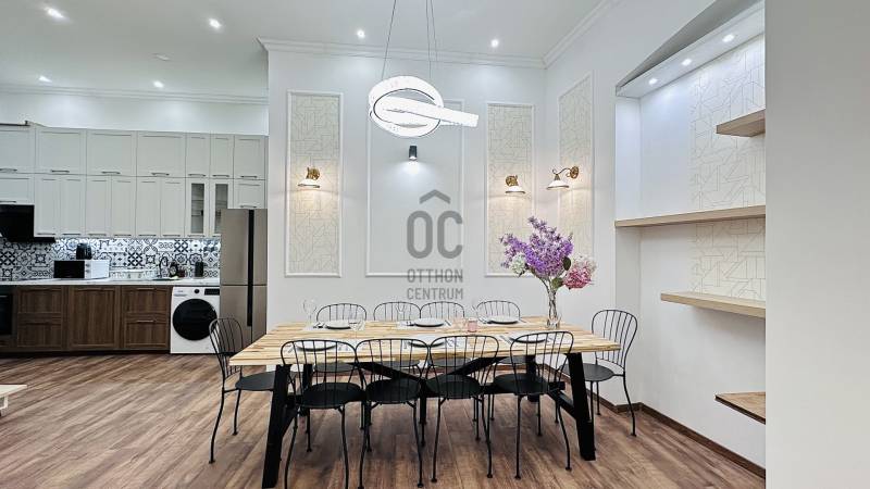 Budapest egyik legfrekventáltabb részén, a József körút 50. szám alatt, eladó egy 118 m² alapterületű, 7 külön nyíló szobás, igényesen felújított lakás, amely kiváló befektetési lehetőséget kínál többféle hasznosítási módra.Az ingatlan első emeleten található, klasszikus polgári épületben. A lakás jelenlegi kialakítása kifejezetten alkalmas jövedelemtermelő hasznosításra. A ház előtt közvetlenül villamosmegálló található, így a város bármely pontja gyorsan és kényelmesen elérhető.A lakás jelenlegi kialakítása kifejezetten alkalmas jövedelemtermelő hasznosításra.118 m² alapterületen, 7 külön nyíló szoba (10–15 m²) és 3 fürdőszoba, 25 m² közösségi tér / nappali. A tömegközlekedés tökéletes – villamos megálló van a ház előtt.A jelenlegi budapesti piaci árak alapján a szobák 400–500 € / hó bérleti díjjal kiadhatók, ami akár évi 14–20 millió Ft bevételt is jelenthet.Lehetséges funkciók:- coliving vagy diákszállás külföldi diákok számára- pszichológiai vagy egészségügyi rendelőközpont- szépségipari vagy szolgáltató központ- iroda vagy coworking tér startupoknak- szobánkénti bérbeadás hosszú távra- hostel vagy serviced apartment koncepcióA 7 külön szoba és a 3 fürdőszoba rendkívül ritka kialakítás Budapest belvárosában, ami különösen alkalmassá teszi befektetési célú hasznosításra.A lakás kialakítása kiválóan alkalmas coliving vagy szobánkénti bérbeadásra. A lakás mérete, elrendezése és kiváló közlekedési kapcsolatai miatt ideális választás befektetők számára, akik stabil hozamot termelő ingatlant keresnek Budapest egyik legforgalmasabb városi tengelyén.Szeretne időpontot egyeztetni egy személyes bejárásra? Hívjon telefonon!Hitelezési Szakértőnk egyetlen lépésben bemutatja Önnek az összes pénzintézet ajánlatát - így elkerülheti a hosszadalmas és felesleges banki látogatásokat – gyorsan, hatékonyan és a legjobb döntést biztosítva Önnek