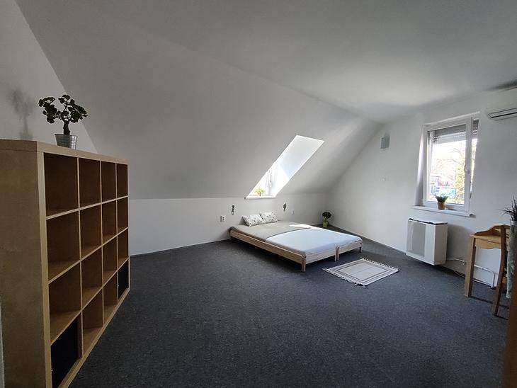 Csillaghegyen ELADÓ egy 60 négyzetméteres KERTKAPCSOLATOS házrész!Az ingatlan 2 szintes elosztású, a földszinten a nappali, konyha és a fürdő található, az emeleten pedig egy tágas szoba gardróbbal.A házrészhez tartozik 9 négyzetméteres terasz.A szobákban fa parketta, a vizes helyiségekben és a földszinten pedig járólap burkolat található.A fűtést gázkonvektorok biztosítják, valamint klíma is be van szerelve mindkét szinten.A nyílászárok műanyag thermo üvegesek.A házrész megosztási szerződéssel van jogilag elkülönítve.Környékről:Közelben minden olyan szolgálatás megtalálható amire szüksége lehet a mindennapokban (kisebb élelmiszer boltok, piac, éttermek, gyógyszertárak). Gyerekes családoknak nagyon ideális hiszen játszóterek, Óvoda, Iskola, Egyetem van a közelben.Tömegközlekedés szempontjából is tökéletes hiszen pár perc sétára található számos buszmegálló, illetve a H5-ös hév.Ha pedig kikapcsolódásra vágyik pár perc sétatávra elérhető a Duna part, ahol számos lehetőség van kikapcsolódni, sétálni, szórakozni.Tömegközlekedés szempontjából is tökéletes hiszen pár perc sétára található számos buszmegálló, illetve a H5-ös hév.PARKOLÁS A HÁZ ELŐTT ÉS KÖRNYÉKÉN INGYENES.FINANSZÍROZÁS:Banki finanszírozással is megvásárolható, melyben irodánk ingyenes tanácsadással áll rendelkezésükre!VEVŐINK RÉSZÉRE A KÖZVETÍTÉS DÍJTALAN!A beépített bútorzat a vételár részét képezi.A hirdetésben szereplő adatok tájékoztató jellegűek.