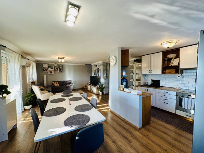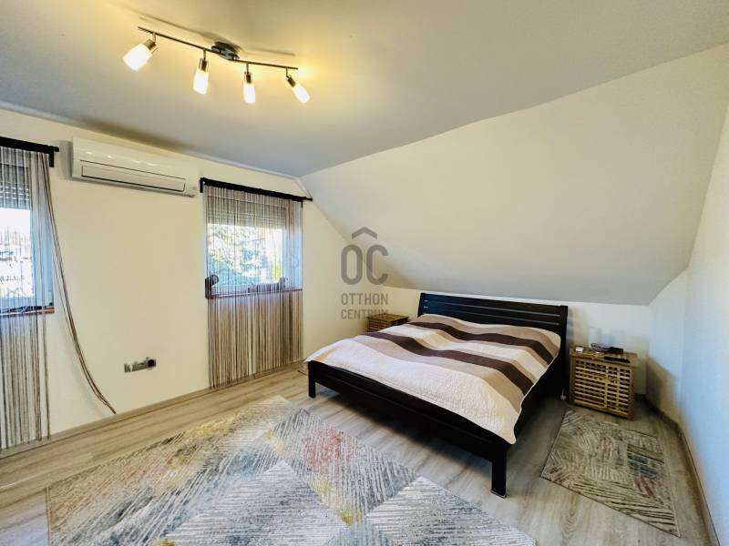 Eladó Mogyoród csendes, igényes környezetében egy kiváló elosztású, 3 szintes, 129 m²-es családi ház, amely 1208 m²-es telken helyezkedik el. Az ingatlan ideális választás lehet családok számára, akik nyugodt, zöld környezetben szeretnének élni, mégis Budapest közelében.A ház tágas, világos terekkel rendelkezik, a nappaliból pedig egy hangulatos, panorámás terasz nyílik, amely tökéletes helyszíne lehet pihenésnek vagy baráti, családi összejöveteleknek.Az ingatlan elosztásaA 3 szintes ház praktikus kialakítású:1. Alsó szint-45 m²-es garázs-tárolásra is alkalmas kiszolgáló terek2. Földszint-tágas nappali teraszkapcsolattal- 2 db külön nyíló szobák-fürdőszoba-előszoba-WC-tároló3. Emelet-2 db tágas szoba-fürdőszoba (gépészet kialakítva, burkolásra vár)-Közlekedő, melyből egy hangulatos fedett erkélyre jutunk. Összesen:nappali + 4 szoba2 fürdőszobaKomfort és műszaki tartalom:-Vegyes-tüzelésű kazán puffer tartállyal-radiátoros fűtés-padlófűtés a nappaliban, előtérben és az alsó szinti fürdőben-3 db Wifis klíma (2 az emeleten, 1 a földszinten)- minden nyílászárón alumínium redőny Telek és extrák:-1208 m²-es telek-elektromos autó töltő kiépítve-ásott kút-fedett autóbeálló-elektromos kovácsoltvas kapu-rendezett, kellemes környezet Lokáció:Mogyoród egyre népszerűbb település Budapest közvetlen közelében, amely kiváló választás azoknak, akik a város közelsége mellett nyugodt, zöld környezetben szeretnének élni. A közelben megtalálhatók iskolák, óvodák, boltok, valamint a közlekedés is kedvező.M3-as autópálya pár percnyire. Ha felkeltette érdeklődését keressen bizalommal a hét bármely napján.
