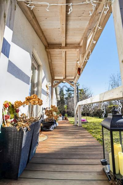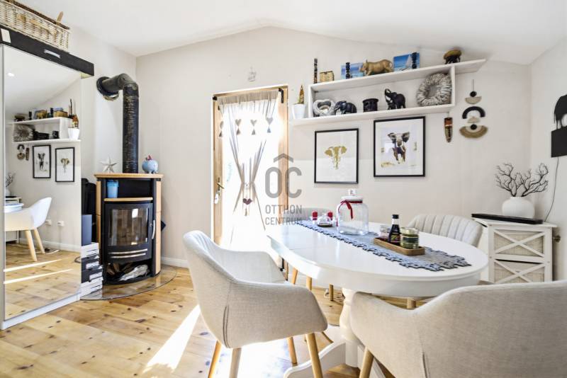 Természetközeli elhelyezkedés, nagy kert, újszerű állapot – ideális választás állandó lakhatásra vagy vendégháznak.Főbb adatok:- Telek: 793 nm- Ház alapterülete: 42 nm- Szobák száma: 2- Terasz: kb. 50 nm- Építés éve: 2020- Beépíthetőség: 10% – ezáltal további bővítési lehetőségHa Szentendrén keres természetközeli, nagy kerttel rendelkező ingatlant, érdemes megismernie ezt a 2 szobás, téliesített házat Boldogtanyán, közvetlenül az erdő mellett.A 2020-ban épült, 42 nm-es könnyűszerkezetes ház egy 793 nm-es telken helyezkedik el, csendes, nyugodt környezetben.Az ingatlan legnagyobb értékei közé tartozik a nagy méretű kerttel rendelkező telek, a ház újszerű, megkímélt belső állapota, valamint a hozzá kapcsolódó kb. 50 nm-es tágas terasz, amely kiváló helyszín pihenésre, baráti összejövetelekre vagy akár egy nyugodt reggeli kávéhoz a természet közelségében.A helyiségek világosak és hangulatosak. A lakótérben fenyő hajópadló, a fürdőszobában járólap található. A természetes fa burkolatok egyedi hangulatot adnak a ház belső tereinek.A ház téliesített, a falakban 10 cm kőzetgyapot szigetelés található.A fűtésről wifi vezérlésű Orion elektromos fűtőpanelek, egy klíma, valamint egy fatüzelésű kályha gondoskodik.A melegvizet Siemens Electronic Comfort átfolyós elektromos vízmelegítő biztosítja.2021-ben a teljes villamos hálózat cseréje megtörtént, jelenleg 3×16 amper áll rendelkezésre.A ház fa nyílászárókkal és bitumenes zsindely tetőfedéssel készült.A 793 nm-es telken 2 autó számára kialakított kocsibeálló található.Közművek:- víz- villany- gáz az utcában- kb. 4 m³-es emésztőElhelyezkedés:Az ingatlan Szentendrén, Boldogtanya városrészben, természetközeli környezetben található, közvetlenül az erdő mellett.Autóval néhány perc alatt elérhető a 11-es főút, és kb. 15 perc alatt megközelíthető Szentendre belvárosa.Ajánljuk:- pároknak vagy egyedülállóknak állandó lakhatásra- hétvégi háznak vagy nyaralónak- befektetőknek, vendégház üzemeltetéséreAz ingatlan üdülőövezetben található, a telek 10% beépíthetőséggel rendelkezik, ezáltal további bővítési lehetőségeket kínál.Ha egy csendes, természetközeli házat keres Szentendrén, amely pihenésre és akár állandó lakhatásra is alkalmas, érdemes személyesen is megtekinteni.Hívjon bizalommal, és ne maradjon le erről a különleges hangulatú ingatlanról!Szentendre, Boldogtanya, 2 szobás ház, kertes ház, könnyűszerkezetes ház, hétvégi ház, nyaraló, erdő mellett, természetközeli ingatlan, nagy terasz, téliesített ház, nagy telek, kis fenntartású ház, befektetés, vendégház