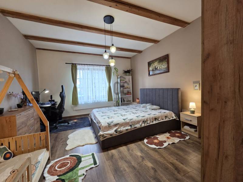 A festői környezetben fekvő Parád csendes, mégis a település központjához közeli utcájában kínálunk megvételre egy 80 m² hasznos alapterületű családi házat, amely 1945 m²-es, egyedi adottságú telken helyezkedik el.A jelenlegi tulajdonosok 2023-ban átgondolt, igényes belső felújítást végeztek, amely során törekedtek arra, hogy a természetes anyagok használata, a modern kényelem és a praktikus helykihasználás egyaránt hangsúlyt kapjon. Ennek köszönhetően a ház belső terei harmonikus, otthonos és jól használható életteret biztosítanak.A felújítás során:-teljes villanyhálózat csere történt,-megújult a víz- és szennyvízhálózat,-új, fa szerkezetű, két rétegű hőszigetelt üvegezésű nyílászárók kerültek beépítésre,-új burkolatok készültek,-valamint teljesen új fürdőszoba és külön WC került kialakításra.A házhoz kamra is hozzáépítésre került, amelynek földhivatali feltüntetése már megtörtént.Az épület fa gerendás födémmel készült, amely felülről szigetelést kapott. A fűtést elektromos fali panelek, valamint egy hangulatos fatüzelésű kályha biztosítja. Az épület tetejét cserép fedi, amely a jövőben felújítást igényelhet.Telek és melléképületekA 1945 m²-es porta domborzati adottságainak köszönhetően két szintre tagolódik, ami különleges hangulatot és sokféle hasznosítási lehetőséget kínál.A telken található:-egy kb. 30 m²-es felújításra váró vályogház,-egy kb. 45 m²-es, vályog falazatú melléképület, amely tárolásra vagy állattartásra is alkalmas,-valamint egy különleges impozáns homlokzatú, száraz, jó állapotú kb. 8 m²-es pince, amely szintén az ingatlan egyedi karakterét erősíti.A kert felső szintjéről gyönyörű kilátás nyílik a Mátra csúcsaira, ami igazán különleges hangulatot kölcsönöz a birtoknak.LehetőségekAz ingatlan mérete és adottságai miatt kiváló választás lehet:-családi otthonnak,-vendégház vagy falusi turizmus kialakítására,-műhellyel kombinált lakhatásra,-vagy akár állattartásra, gazdálkodásra is alkalmas életformához.Az ingatlan belső felújítása igényesen történt, így egy azonnal élhető otthon várja új tulajdonosát, miközben a külső megjelenést még saját elképzelései szerint alakíthatja.Ha egy sok lehetőséget rejtő, különleges hangulatú ingatlant keres Parádon, érdemes személyesen is megtekinteni!#EladóHáz #CsaládiHáz #FelújítottOtthon #NagyTelek #VidékiÉlet #OtthonTeremtés