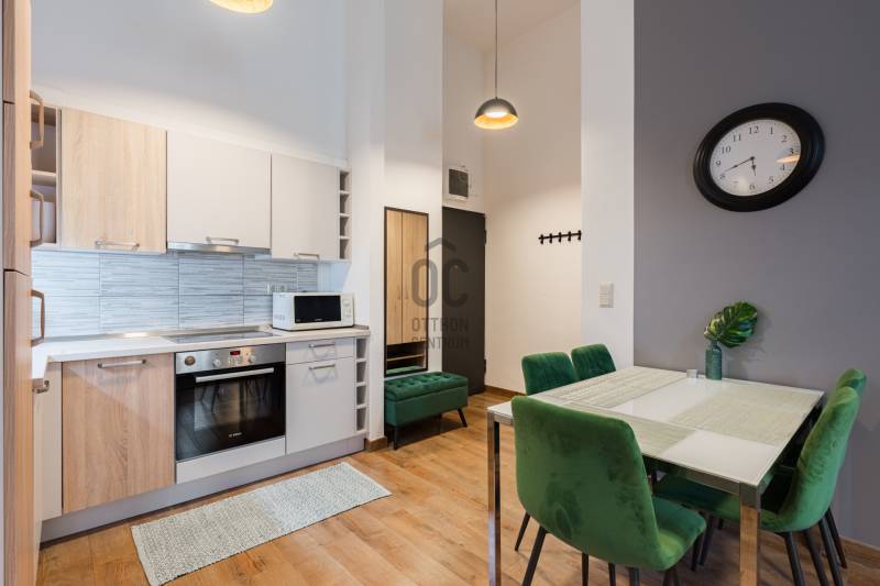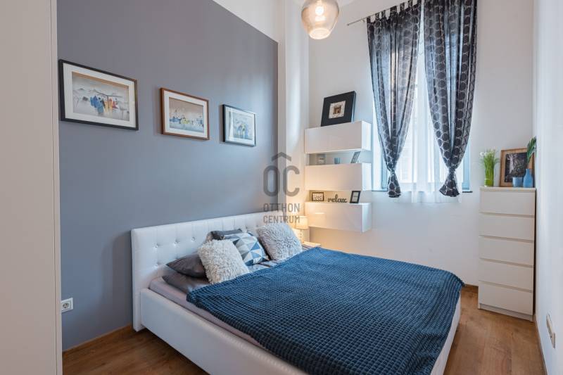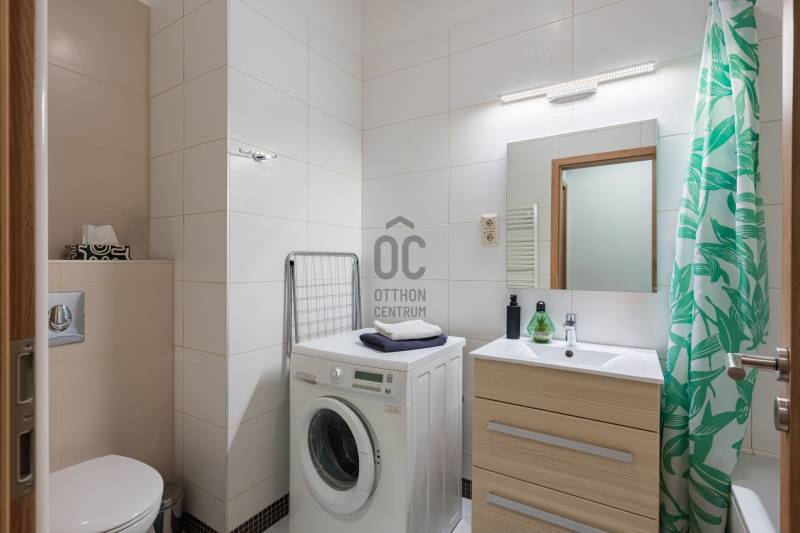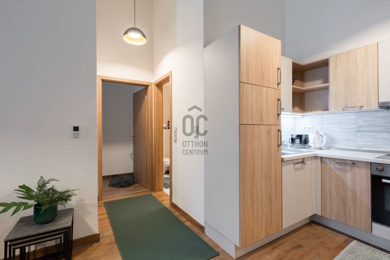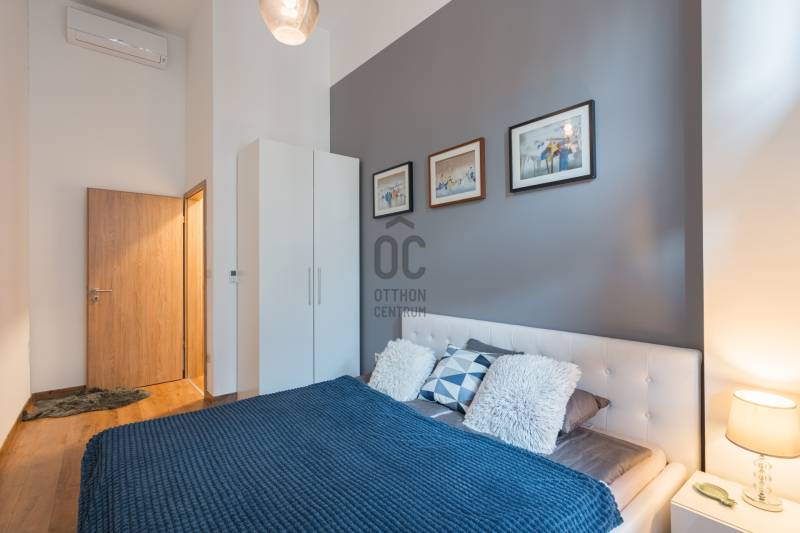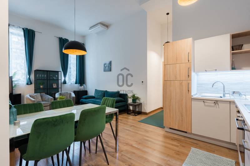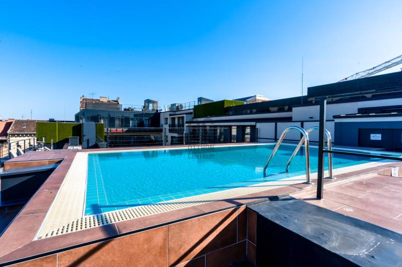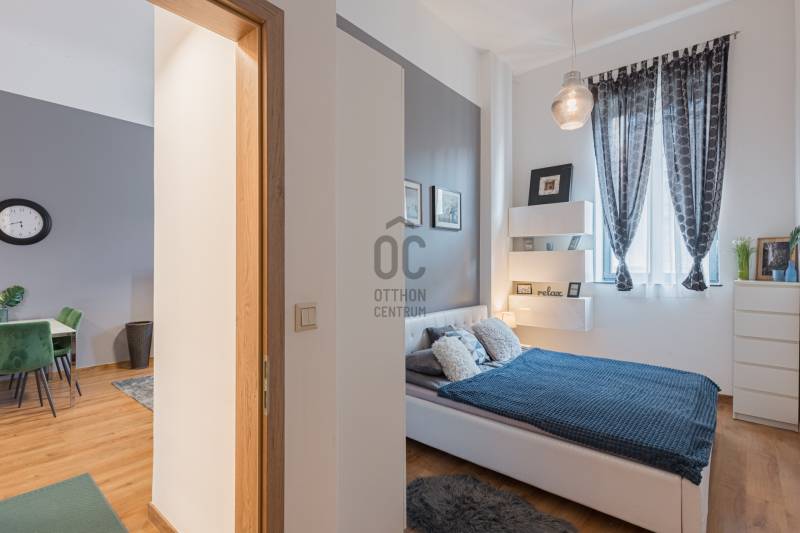 Eladásra kínálunk Budapest VI. kerületében, a Király utcában található modern, 2020-ban átadott prémium lakóépületben egy kiváló állapotú, 3. emeleti lakást. Az ingatlan déli fekvésű, utcára néző, lift segítségével könnyen megközelíthető, valamint akadálymentes kialakítású és légkondicionált. A ház korszerű, központi fűtési rendszerrel működik egyedi mérőkkel.A lakás belső tereit elegáns és modern stílus jellemzi. A gondosan kialakított alaprajz és a kedvező tájolás miatt a lakótér világos, kellemes atmoszférát biztosít. Az ingatlan jelenlegi formájában azonnal költözhető vagy befektetésként is könnyen hasznosítható.A lakás egy hét szintes, magas minőségben kivitelezett társasházban található, ahol a lakók biztonságáról folyamatos portaszolgálat gondoskodik. Az épület egyik legnagyobb különlegessége a tetőszinten kialakított kültéri medence és napozóterasz, ahonnan lenyűgöző kilátás nyílik a városra.Érdemes kiemelni, hogy ebben a házban ritkán kerülnek lakások értékesítésre, így az ajánlat különösen értékes lehet mind befektetők, mind saját otthont keresők számára.Az ingatlan fenntartási költsége kedvező: gáz nincs az épületben, a hűtést és fűtést fan-coil rendszer biztosítja. A megfelelő hőszigetelés és az A+ energiaosztály hosszú távon is alacsony rezsiköltséget eredményez.Igény esetén a lakás meglévő hosszú távú bérlővel és üzemeltetéssel együtt is átvehető, ami stabil, rendszeres bevételt jelenthet az új tulajdonos számára.A környék infrastruktúrája kiváló: a Gozsdu Udvar néhány perc sétával elérhető, a közelben üzletek, éttermek, szórakozóhelyek, gyógyszertár és számos szolgáltatás található. A pezsgő belvárosi környezet és a kiváló kiadhatóság miatt az ingatlan hosszú távon is értékálló befektetés.Az ajánlat elsősorban azoknak lehet ideális, akik stabil hozamot kínáló belvárosi ingatlant keresnek, ugyanakkor egy magas színvonalú saját otthon lehetőségét sem szeretnék kizárni.