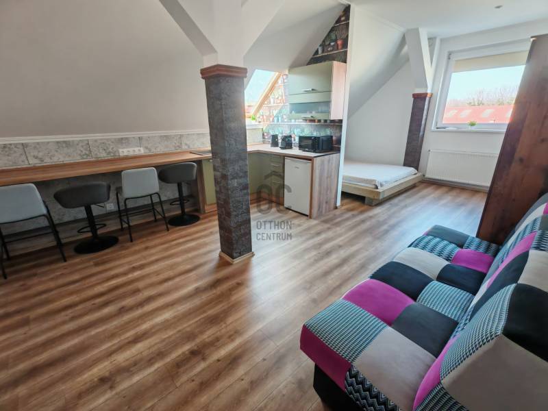 Balatonszárszó szívében eladó egy tágas30 m²-es, amerikai konyhás nappali + hálószobás lakás, teljes körűen felújított épület első emeletén. Ideális választás nyaralónak vagy befektetésnek egyaránt. Azonnal birtokba vehető.A lakás modern, világos, amerikai konyhás nappalival, elválasztott hálórésszel rendelkezik. Teljesen berendezett, minden bútor és tároló rendelkezésre áll.Főbb jellemzők• Alapterület: 30m² • amerikai konyhás nappali, nyitott hálórész elrendezéssel• elektromos infra fűtés / hűtő-fűtő klímaberendezés• saját víz- és villanyóra• tehermentes, azonnal költözhető• beépített bútorok és tárolók a hely maximális kihasználásáraElőnyök• közös használatú kert pihenésre és szabadidőre• parkolóhely minden lakás számára• rendezett, barátságos környezetben • kiváló környék, közel minden szolgáltatáshoz:élelmiszerbolt, egészségügyi és szépségápolási szolgáltatások éttermek, kávézók.• Balaton-part mindössze 10 perc sétára• teljes körűen felújított, újszerű épület• közös területek: zöld terület, játszótér✔ Központi mégis nyugodt környék✔ nyaralónak vagy befektetésnek ideális✔ stílus és kényelem egybenEz a lakás nemcsak otthon vagy nyaraló hanem kiváló befektetési lehetőség is, hiszen a Balaton körüli ingatlanpiac folyamatosan növekszik, és a jövőbeli értéknövekedés garantált. Bármilyen kérdése van, szívesen állok rendelkezésére. Élj a lehetőséggel, és találj rá álmaid otthonára Balatonszárszón!Ez az ingatlan a \"Felező csomag\" megbízási portfólióhoz tartozik. Részletek az Otthon Centrum weboldalán.