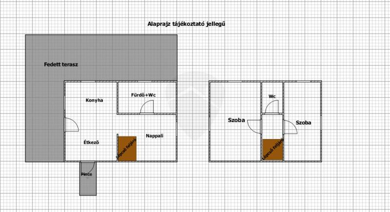 Eladó a Szarvashegy egyik legszebb pontján egy 64 m²-es, tégla építésű hétvégi ház, amely egy 2066 m²-es, teljesen körbekerített, két utcára nyíló telken helyezkedik el. A különleges elhelyezkedésnek köszönhetően a birtok egyszerre kínál csodálatos panorámát, nyugalmat és kiváló fejlesztési lehetőségeket.A ház jellemzőiA 64 m²-es lakótér praktikus elosztású:• Földszint: konyha–étkező, nappali, fürdőszoba + WC • Hangulatos, boltíves faajtón keresztül elérhető kb. 20 m²-es hűvös pince • Tetőtér: 2 kényelmes méretű szoba + külön WC A házat körülöleli egy közel 70 m²-es, L alakú fedett terasz, ahonnan páratlan kilátás nyílik a környező tájra – ideális hely pihenésre, baráti összejövetelekre.Műszaki tartalom• Tégla építés, 10 cm szigeteléssel • Cserépfedés • Villany- és vízhálózat kb. 10 éve felújítva • Vízellátás kútról, vízlágyító rendszerrel • Fa nyílászárók • Fűtés: kandalló + elektromos panelek Telek és környezetA teraszosított telek kiválóan kihasználható, a hegyoldali fekvés ellenére több sík pihenőrész került kialakításra.• Rendezett, tujákkal szegélyezett kert • Kiépített szalonnasütő – tökéletes családi, baráti programokhoz • A telken található egy 70 m²-es, beton alapú féltetős építmény, amely garázsnak, műhelynek vagy tárolónak is ideális Extra lehetőségA telek alsó, külön utcáról is megközelíthető része teljesen leválasztható és beépíthető, így kiváló befektetési vagy bővítési potenciált kínál.