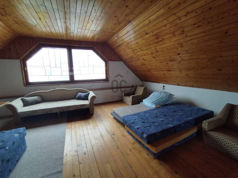 Ez a nyaraló tökéletes választás fiatalos felnőttek számára, akik egy kényelmes és élhető otthont vagy nyaralót keresnek Balatonkenesén, a festői Veszprém vármegyében. Az alapterülete 116 nm, 510 nm-es telken helyezkedik el. A három szobás elrendezés jó lehetőséget kínál a barátokkal való összejövetelekhez, közös családi nyaraláshoz.Vt3 övezetei besorolású-20%beépíthetőség- 30% min. zöldfelület megtartásával. Szabadon álló beépítés. Max. építménymagasság 6m.Évi 600Ft/m2 építményadót kell megfizetni.Az ingatlan az 1980-as évek elején téglából épült, masszív szerkezetű. A nyílászárók eredetileg fából készültek, de a földszinten többrétegű hő -és hangszigetelő műanyag nyílászárók kerültek beépítésre, a redőnyök is korszerűsítve, cserélve lettek. Csak a felső szinten maradtak fa nyílászárók, de ezeket sem kellene feltétlenül cserélni, különösen a színes mozaikablakot kár lenne, ami a felső szint hangulati eleme. Elrendezése: Előszoba, nappali, konyha-étkező, hálószoba, fürdő-wc a földszinten. A nappaliból tágas teraszra léphetünk ki, ami félig fedett loggia jellegű. A party zóna a felső szinten található, 53 négyzetméter egybenyitva a padlástérben, fürdőszobával kiegészítve. Külön bejárattal megközelíthető külső csigalépcsőn keresztül. A nyaralóban tehát két fürdőszoba található, így a reggeli rohanásban senkinek sem kell várakoznia, ami különösen fontos lehet a fiatalok számára. A ház felújítandó, így lehetőséged van arra, hogy saját ízlésed szerint alakítsd ki. Belső állapota barátságos, világos. Fűtése jelenleg nincs, de a gáz/ cirko korábbi megoldás visszaálltható, ill. megoldható egyszerűbb hűtő-fűtő klímaberendezéssel is. Az ingatlanhoz tartozó 8 nm-es terasz ideális helyszín a reggeli kávézáshoz vagy a nyári barbecues estéhez. A világos tágas nappali pedig tökéletes keretet ad a közös élményeknek. Az ingatlan a városközponttól párszáz méterre található, gyalogosan és autóval is könnyedén és hamar megközelíthető. A közelben található egy korszerű játszótér, fitness park, cukrászda, pékség, Rossmann és egyéb élelmiszerboltok is. A Balaton part autóval 5 perc alatt elérhető, gyalogosan 10 perc sétatávolságban. Az M7-es autópályáról külön lejáró vezet ide.Közlekedési csomópont közelében helyezkedik el, ami kitűnő közlekedési lehetőségeket biztosít, legyen szó autós vagy tömegközlekedési megoldásokról. A környék ideális otthont nyújt, ahol kisállattal is költözhetsz, így a kedvenced is része lehet az új otthonodnak. Balatonkenese nemcsak a nyaralásra, hanem a mindennapi életre is tökéletes választás, hiszen a Balaton közelsége, a számos szabadidős lehetőség és a barátságos közösség mind hozzájárulnak ahhoz, hogy itt élni jó. Az ingatlan tehermentes, így azonnal birtokba veheted, és elkezdheted a saját történetedet. Ha bármilyen kérdésed van az ingatlannal vagy a vásárlási folyamattal kapcsolatban, ne habozz, keresd bizalommal!