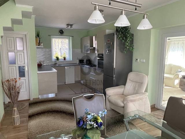 Budakeszi csendes, idilli külterületén, Nagyszénászugban található ez a kiváló állapotú, 119 nm-es családi ház, amely ideális választás lehet családosok számára, akik szeretnék ötvözni a hegyvidéki élet, a nyugodt zöldövezet és a főváros közelségének előnyeit. Az ingatlan egy 718 nm-es telken helyezkedik el, rendezett kerttel, amely tökéletes helyszín a gyerekekkel töltött szabadidős tevékenységekhez, valamint a baráti összejövetelekhez. A tágas nappali világos és modern kialakítása a családi együttlétek méltó helyszínévé teszi, míg a 10 nm-es terasz a nyári estéken kínál kellemes pihenési lehetőséget. Az alsó szinten a nappaliból nyílik a tágas, 27 nm-es étkező-konyha, így bőséges hely áll rendelkezésre nagyobb családi- vagy baráti összejövetelek esetén is. A földszinti wc-kézmosó gondoskodik arról, hogy a vendégeknek ne kelljen igénybe venni a fenti fürdőszobát. A gázfűtés (cirko) és a klíma megfelelő hőmérsékletet biztosít bármely évszakban, amit a konyhában és az étkezőben padlófűtés egészít ki. A 3 külön nyíló szoba önálló teret biztosít a család minden tagjának. A hatalmas dupla garázs és a 28 nm-es tároló ritka érték, elnyeli az összes kacatot. A kerti szerszámok tárolásához önálló faház áll rendelkezésre.Az épület falazata 38-as porotherm, 5 cm-es szigeteléssel. Vezetékes és fúrt kút adja az éltető vizet a mindig zöld kerthez, ahol számos gyümölcsfa járul hozzá a vidéki életérzéshez. Az összes ablakon redőny és szúnyogháló található. Az elektromos kaputól térkövezett kocsibeálló vezet a garázshoz. A biztonságról riasztórendszer gondoskodik.Az ingatlan tehermentes, rövid határidővel költözhető. A környék csendes és biztonságos, ideális gyereknevelésére, a közeli zöld területek pedig remek lehetőséget biztosítanak a természetjárásra és a szabadtéri programokra. Az autós közlekedés is egyszerű, hiszen Budakeszi jól megközelíthető az M1-es és M7-es autópályákon keresztül, így a város nyüzsgése is könnyen elérhető (Kelenföld 10 perc), miközben a nyugalom szigetén élhet. Ez a hegyvidéki ingatlan nem csupán egy otthon, hanem egy életstílus, amely a természet közelségét és a városi kényelmet ötvözi. Ha Ön is vágyik egy olyan környezetre, ahol a családja biztonságban és boldogan élhet, ne habozzon, keressen bizalommal a hirdetett ingatlannal kapcsolatban! Szívesen válaszolok minden kérdésére, hogy Ön megtalálja álmai otthonát.Fontos tudni, hogy - lévén zártkertről van szó - a tulajdoni lapon gazdasági épület besorolás volt csak feltüntethető, így csak nagyon esetlegesen hitelezhető. Elsődlegesen készpénzes vevők jelentkezését várjuk! Ugyanakkor ez egyben az ingatlan vonzereje is, hiszen családi ház besorolás esetén legalább 30M forinttal lenne magasabb a vételár.
