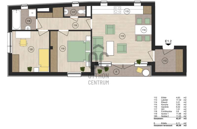 A megjelölt vételár, szerződéskötéskor 100 % befizetésével érvényes !Egyéb fizetési ütemezés esetén az ár változik, erről kérjen bővebb felvilágosítást !!Ez az ingatlan az 1. emeleten helyezkedik el.Projekt bemutatásaDebrecen kedvelt, és egyik legértékálóbb részén, a Hatvan Utcai kert csendes utcájában, közel a Kenézy kórházhoz épül, egy 5 lakásos társasház.Az ingatlan a legmodernebb építőanyagokkal, szerkezeti elemekkel lesz megépítve.Minden lakás terve átgondolt, élhető tereket tartalmaz, jó kiosztású, modern elrendezésű.Várható átadás : ha minden jól megy 2026 év vége, de max 2027 tavasza.A társasház felépítése : Földszinten : 1 db lakás ( 74,42 m2 ) + teraszkapcsolattal ( 9,77 m2 ) , 5 db gépkocsitároló és 5 db tárolóEmelet : 2 db lakás erkéllyel ( egyik lakás :74,42 m2 + 9,77 m2 erkély , a másik lakás : 62,87 m2 + 4,1 m2 erkély )Tetőtér : 2 db lakás ( egyik lakás : 57,2 m2 , a másik lakás: 52,18 m2 )Műszaki jellemzői :- Leier 30 NF tégla főfalak- Leier 10 Nf tégla válaszfalak- homlokzati, lábazati szigetelés : 15 cm polisztirol- nyeregtetős tetőszerkezet, betoncserép héjazással- nyílászárók : műanyag , 3 rtg - ű üvegezés a 6 légkamrás profilban ( prémimum német minőség, szinezett kivitelben )- fűtés : levegő - víz hőszivattyú alkalmazással lesz megvalósítva, padló hőleadókkal , vizes helyiségekben törölköző szárítóval - árnyékolás : elektromos vezérlésű aluminium redőny- erkély : edzett üveg betétekkel- kaputelefonos és kódzárós beléptető rendszer- udvar : térkövezés, füvesítés, parkosítás, kandellábelek az udvaron kivitelezésre kerülnekMűszaki tartalom:- beltéri ajtók : borovi dekorfóliás, 5 féle választható szinben- hidegburkolat : 8.200 Ft/m2 bruttó ár- melegburkolat : 8.500 FT/m2 bruttó ár- zuhanykabin : 89.280 Ft/db nettó ár- mosdó : 25.500 Ft/db nettó ár- fürdőkád : 101.500 Ft/db nettó ár- beépített wc : 58.600 Ft/db nettó ár- zuhany csaptelep : 26.280 Ft/db nettó ár- mosdó csaptelep : 25.700 Ft/db nettó ár- kádtöltő csaptelep : 29.500 Ft/db nettó árAz ingatlan előnyei : nagyon jó lokáció, kis lakóközösség, modern kivitelezés, a korszerű technológiák alkalmazása miatt kiváló energetikai besorolás, alacsony fenntartási költség, stb...Ha felkeltettem az érdeklődését, kérem hívjon bizalommal, akár hétvégén is, adok tájékoztatást, és amennyiben érdeks lehet a helyszínen bemutatom az ingatlant.Köszönöm, hogy elolvasta !!!