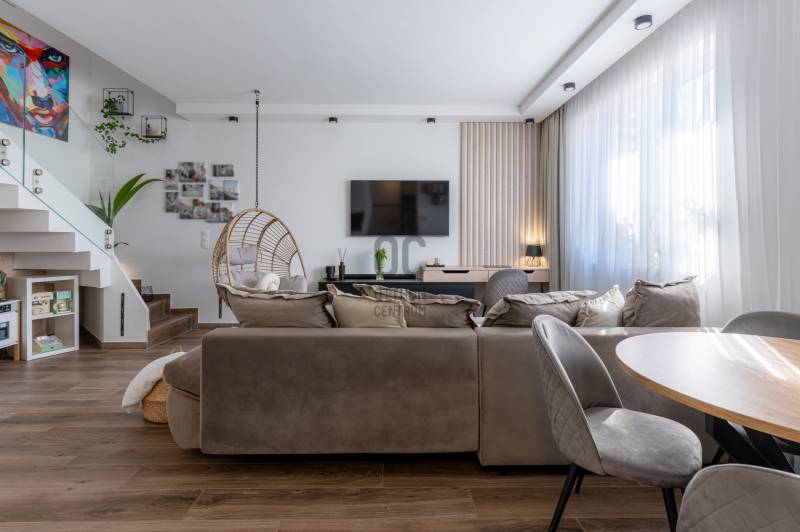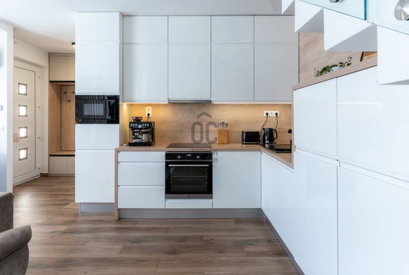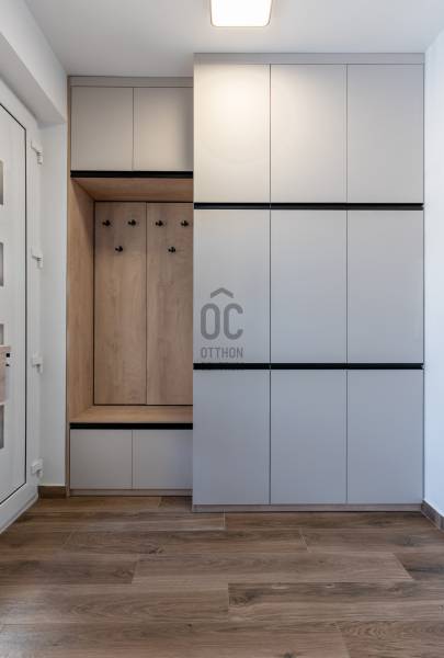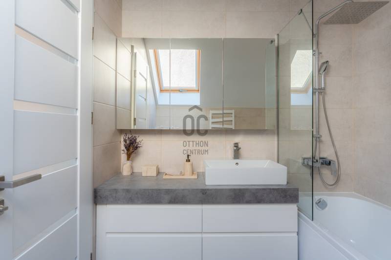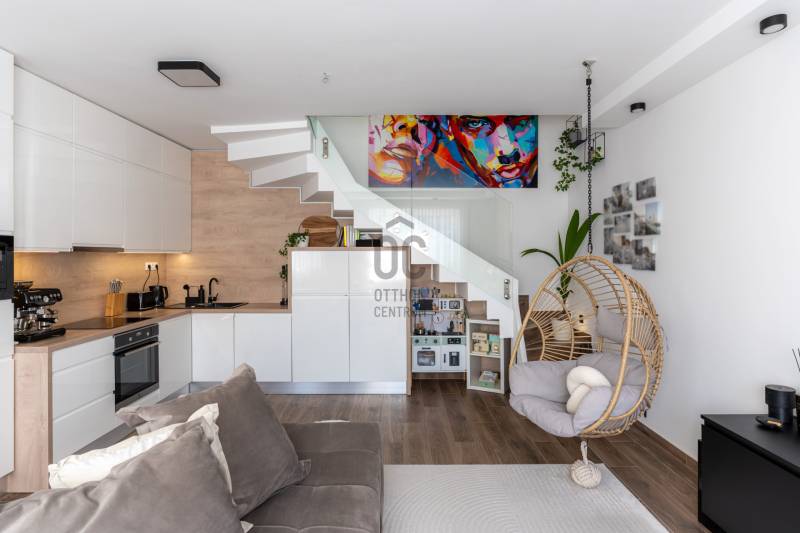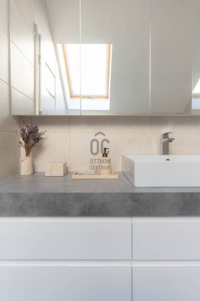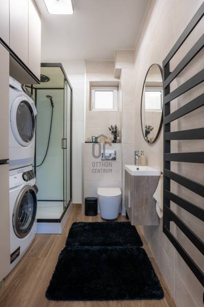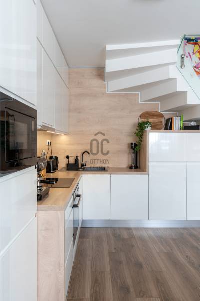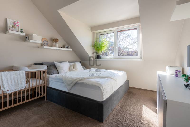 Prémium életérzés Budakeszi szívében – azonnal költözhető, teljesen berendezett otthonVan egy pont, amikor egy lakás már nem csak négy fal – hanem egy tudatos döntés a minőség mellett. Ez az otthon pontosan ilyen.Budakeszi egyik legkeresettebb részén, mégis nyugodt, csendes környezetben kínálok megvételre egy 2023-ban épült, kétszintes, nettó 70 m²-es, sorházi hangulatú lakást – teljes berendezéssel, első tulajdonostól.A délnyugati tájolásnak köszönhetően a terek egész nap fényben úsznak, az átgondolt belső kialakítás pedig nemcsak esztétikus, hanem kifejezetten élhető. Ide valóban csak megérkezni kell.Alsó szint – ahol az élet zajlikEgy praktikus előszoba fogad beépített tárolókkal, majd egy igényesen kialakított fürdőszoba, amely egyben mosókonyhaként is funkcionál.A lakás szíve a tágas, amerikai konyhás nappali: prémium minőségű, egyedi bútorokkal, jól elkülönített dolgozósarokkal – tökéletes tér a mindennapokhoz és a feltöltődéshez.Felső szint – a nyugalom tereA nagyobb hálószoba elektromos redőnnyel és egy tágas, beépített gardróbbal biztosít kényelmet.A második szoba ideális gyerekszobának, dolgozónak vagy vendégszobának.Az emeleti, kádas fürdőszoba szintén egyedi bútorokkal készült – itt minden részlet a kényelmet szolgálja.Ami igazán kiemeli ezt az otthont– Teljesen bútorozott és gépesített – nincs kompromisszum– Egyedi, magas minőségű beépített bútorok minden helyiségben– Modern, energiatakarékos megoldások – alacsony fenntartási költség– Panasonic hőszivattyús padlófűtés mindkét szinten– Hűtő-fűtő klíma a maximális komfortért– Saját, 30 m²-es kertkapcsolat– 2 fedett autóbeállóA két fedett beálló kötelezően megvásárolandó, összesen 5 millió Ft értékben.A zárt, rendezett lakóparkban mindössze néhány lakás található, saját kertekkel és belső parkolóval – biztonságos, barátságos közeg, ahol jó élni.Lokáció, ami valódi értékA ház előtt buszmegálló, így a Széll Kálmán tér és Budaörs gyorsan elérhető.A közelben minden megtalálható: bevásárlási lehetőségek, iskola, óvoda, kávézók – minden, ami a kényelmes mindennapokhoz kell.Ez nem csak egy lakás. Ez egy kész élethelyzet.Ha olyan otthont keresel, ahol a minőség, a funkcionalitás és az azonnali költözhetőség találkozik – ezt érdemes megnézned.