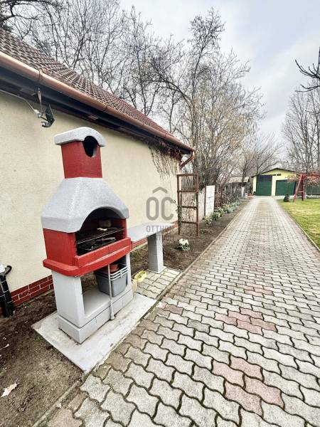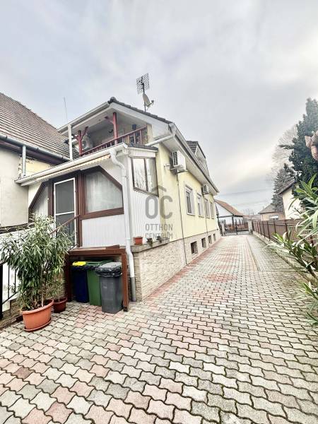 Központi elhelyezkedéssel, iskola, vasútállomás és üzletek közelében eladó egy 275 m²-es, 3 szintes, 6 szobás + nappalis, két generáció számára is ideális ikerházfél, 742 m²-es saját telekkel.Az ingatlan két konyhával, 2 beállásos garázzsal, számos tárolási lehetőséggel rendelkezik. A ház szigetelt, fa thermo nyílászárókkal, 3 klímával, pár éves kondenzációs gázkazánnal, víztisztító rendszerrel és elektromos kovácsoltvas kerítéssel felszerelt.A kertben a gyerekhinta, szaletli és a sütögető is a vételár részét képezi, valamint az ingatlanban lévő bútorok egy része is. Ideális választás nagycsaládosoknak, több generáció együttélésére, vagy akár otthoni vállalkozás kialakítására is.