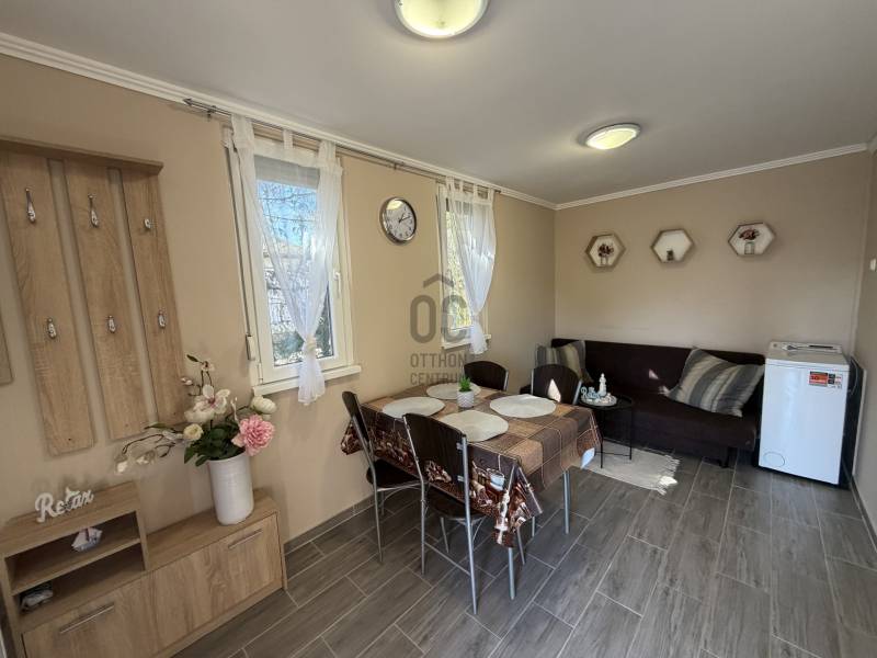 Egy modern, világos és kiváló állapotú ingatlant keresel Hajdúszoboszlón? Akkor ez a nyaraló a Fürdőnegyedben tökéletes választás számodra. Ez az ingatlan 50 négyzetméteren kínálja a kényelmet és a stílust, amit megérdemelsz. A kétszobás elrendezés lehetővé teszi, hogy barátokkal vagy családdal élvezd a közös pillanatokat, a tágas nappali pedig a tökéletes helyszín a lazításra vagy a közös programok lebonyolítására. A két különálló hálószobához saját fürdőszobák tartoznak, ennek köszönhetően az ingatlan ideális választás lehet vendégtartásra is.A klímás fűtés és hűtés és ház szigetelése garantálja a kellemes hőmérsékletet bármely évszakban. A biztonsági ajtó, műanyag nyílászárók és a kültéri kamera pedig a nyugalmat és a biztonságot szolgálják, hogy mindig otthon érezhesd magad. A 250 négyzetméteres telek egy rendezett kerttel rendelkezik, ahol a szabadban eltöltött idő igazi élménnyé válik. A kerti tároló biztosítja, hogy a kerti eszközöket rendezetten tárold, a fedett gépkocsibeálló és a térburkolt udvari beálló lehetővé teszi a biztonságos parkolást.Ráadásul, ha kisállattal költöznél, ez az ingatlan tökéletes választás, hiszen a csendes környék és a közelben lévő szabadidőpark ideális a sétákhoz és a játékhoz. A Fürdőnegyed felkapott környékén való elhelyezkedés a nyugodt életstílust biztosítja.Ez az ingatlan nem csupán egy lakóhely, hanem egy lehetőség, hogy egy modern és kényelmes életet élj Hajdúszoboszlón.A lakás tehermentes, így gyorsan és egyszerűen birtokba vehető.Ne habozz, ha kérdéseid vannak, vagy szeretnéd megtekinteni ezt az ingatlant, bátran keress meg! Bizalommal állok rendelkezésedre, hogy segítségedre legyek az új otthonod megtalálásában!Amennyiben vásárláshoz hitelre is szükséged van független hitel tanácsadónk ingyenesen tud segítséget nyújtani a legjobb konstrukciók kiválasztásában és a folyamat lebonyolításában.Irodánk kereső ügyfeleinknek teljes körű szolgáltatást nyújt, szakszerű tanácsadással, energetikai tanúsítvány elkészítésével, hitelügyintézéssel és profi ügyvédi segítséggel.AZ INGATLAN A FELEZŐ PORTFÓLIÓ RÉSZÉT KÉPEZI!A HIRDETÉSI ADATOK ÉS AZ ALAPRAJZ TÁJÉKOZTATÓ JELLEGŰEK !Ez az ingatlan a \"Felező csomag\" megbízási portfólióhoz tartozik. Részletek az Otthon Centrum weboldalán.