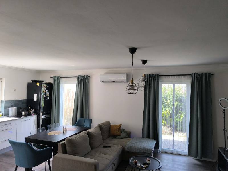 Albertirsán, csendes, zöldövezeti, fás-ligetes környezetben, a belvárostól mindössze 5 percre kínálok megvételre egy 2022-ben épült, modern, letisztult stílusú, nettó 70 nm-es családi házat, 496 nm-es telken.Az ingatlan kiváló elosztású: amerikai konyhás nappali, 2 hálószoba (az egyikhez gardrób is tartozik), fürdőszoba, előszoba, valamint egy háztartásihelyiség, ahol a vendég WC kialakítása folyamatban van.A ház ytong téglából épült, szigetelt, tető héjazata szeglemez, korszerű műanyag nyílászárókkal. A burkolatok igényesek a közösségi terekben vízálló laminált padló, a szobákban meleg hatású laminált található. A konyhabútor gépesítve a vételár részét képezi.A fűtésről 3,5 kW-os inverteres klíma és modern okos panel gondoskodik a H tarifa bekötése folyamatban. A melegvizet Ariston okos bojler biztosítja. A szennyvíz bioemésztő rendszerrel megoldott. A gázvezeték az utcában halad el.A nappaliból nyíló teraszról csodálatos naplemente tárul elénk, míg a további 18 nm-es terasz igény szerint beépíthető. A telek ideális méretű, tökéletes pihenésre a panorámás kilátás pedig különleges hangulatot biztosít. A gázvezeték az utcában halad el. Az ingatlan per- és tehermentes, azonnal költözhető.Szolgáltatásaink ingyenesek. Hétvégén is várom hívását!Alitisz Judit 06204004009