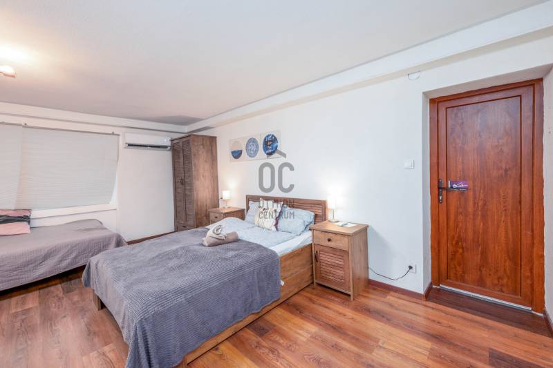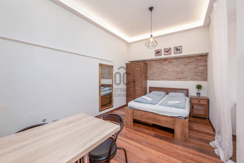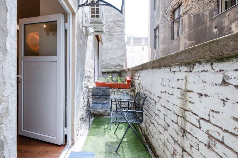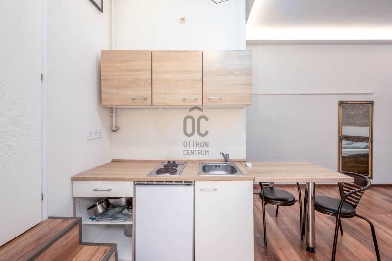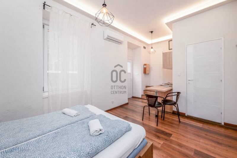 Eladó egy különleges kialakítású, 49 m²-es lakás, amely jelenleg két különálló lakrészként funkcionál. A lakás két szobával és két fürdőszobával rendelkezik, így ideális megoldás lehet diákoknak, testvéreknek vagy barátoknak, akik szeretnének együtt lakni, mégis megőrizni a saját privát terüket.A lakás különlegessége, hogy egyben van, mégis két jól elkülönülő élettérből áll, így befektetési szempontból is rendkívül praktikus. Hosszútávú kiadásra kiváló, hiszen a környék rendkívül népszerű a külföldi és magyar egyetemisták körében is.Az ingatlanhoz tartozik egy 16 m²-es \"terasz\", amely a félemeleten található, és kellemes plusz életteret biztosít. Az egyik lakrész 240 cm, a másik 300 cm belmagasságú, ami változatos térérzetet ad a lakásnak. A nyugati fekvésű udvari nézet csendes és nyugodt környezetet biztosít a belváros szívében.A komfortérzetről fűtő-hűtő klíma gondoskodik minden évszakban. Az ingatlanban nincs gázvezeték, a közös költség mindössze 19.000 Ft, amely a vízfogyasztást is tartalmazza.A lakás teljes bútorzattal és berendezéssel együtt eladó, így akár azonnal költözhető vagy kiadható.A környék páratlan: a Liszt Ferenc tér tele van hangulatos éttermekkel, kávézókkal és kulturális programokkal. Néhány perc sétára található az Oktogon, a Zeneakadémia, valamint számos egyetem és szórakozási lehetőség.Az ingatlan ritkaságnak számít ezen a környéken, különleges kialakítása miatt pedig valódi kuriózum a belvárosi lakások között.Ha felkeltette érdeklődését ez a remek lehetőség, keressen bizalommal, és egyeztessünk időpontot a megtekintésre!