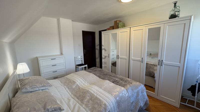 Hajdúböszörmény, Belvárosában eladó, 140 nm-es lakóterű, felújított családi ház 853 nm-es telken. A földszinten egy hallból nyílik a tágas nappali-étkező, a konyha-étkező, a hálószoba, a külön WC-fürdőszoba és a kamra.Az emeleti részen egy dolgozó-szabadidős helyiségből nyílik egy hálószoba fürdőszoba kapcsolattal és a gyerekszoba.Jellemzők:--egyedi tervezésű konyhabútor beépített gépekkel--hőszigetelt üvegezésű fa nyílászárók, új redőnyökkel--új fürdőszoba burkolatok, új szaniterek-- új klímák, új villanybojler, riasztó rendszer--új homlokzat, új kerítés, új tetőszerkezet--tölgyfa lépcső és gardrób szekrények, keményfa parketta--ha kevés a szoba, a nappali kétfelé osztható--100 nm-es raktározásra alkalmas melléképület, felújítva kétgenerációs házzá alakítható-- konyhából nyíló 25 nm-es terasz a szabadidő eltöltéséhez, az udvaron árnyas diófa, fúrt kút--35 nm-es szuterén jellegű pinceA belváros rövid sétával elérhető, bevásárlási lehetőség, óvoda a közelben van. Debrecen akár autópályán akár a 35-ös úton kb 10-15 perc alatt megközelíthető.Ajánlom ezt a jó állapotú, felújított ingatlant családok számára, de a 100 nm-es melléképülettel 2 generációssá tehető, vagy vállalkozásra is kiváló.Egyéb információért és a megtekintéshez hívjon bizalommal.