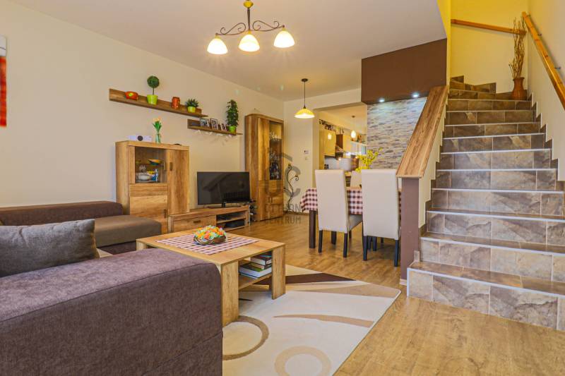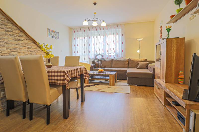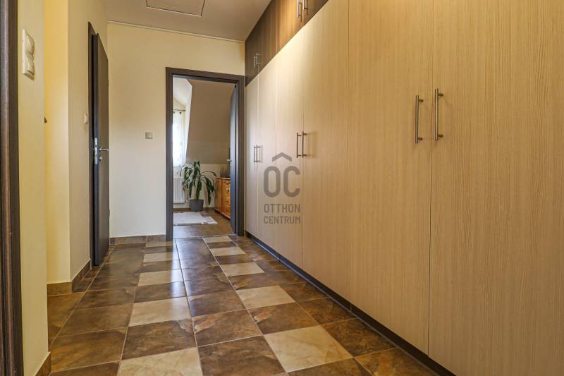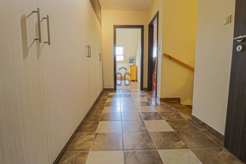 Sopron nyugodt lakóövezetében, az Apácakertben kínálunk megvételre egy kiváló állapotú, átgondolt elrendezésű ikerház felet.Az ingatlan átmenő forgalomtól mentes utcában található, ahol a kertvárosi csend és a város közelsége tökéletes egyensúlyt alkot.FŐBB JELLEMZŐK2012-ben épült, tégla szerkezet10 cm homlokzati hőszigetelés91 m² bruttó alapterület, két szinten170 m² kizárólagos használatú telekkiváló műszaki és esztétikai állapotALSÓ SZINTelőszobafürdőszobakonyhanappali- étkezőpraktikus tárolóhelyiségés közvetlen kijárat a 13 m²-es, burkolt, árnyékolóval ellátott teraszraFELSŐ SZINTközlekedő beépített gardróbbalszülői hálószobagyermekszobavendégszoba vagy dolgozószobakülön mellékhelyiségA közlekedőből elérhető padlástér további ~20 m² tárolási lehetőséget kínál.MŰSZAKI TARTALOMMinden ablak redőnnyel és szúnyoghálóval felszerelt2025-ben új kondenzációs gázkazán2025-ben megújult külső homlokzati festésKERT ÉS KÜLTÉR170 m² saját használatú, rendezett telek5 m²-es faház csendes, zöldövezeti környezetPARKOLÁSTérkövezett, részben fedett udvari beálló 1 autó számáraA ház előtt, illetve az utcában további ingyenes parkolási lehetőségLOKÁCIÓAz Apácakert igazán népszerű a soproniak körébenCsaládbarát, biztonságos, zöldövezeti környezet, miközben minden fontos szolgáltatás gyorsan elérhető.Kinek ideális?Kisgyermekes családoknakNyugalmat kereső pároknakÖSSZEGZÉSRemek választás azok számára, akik praktikus elrendezésű, jó állapotú, kertkapcsolatos otthont keresnek Sopron egyik legjobb lokációjában – hosszú távra tervezve.Hitelre van szüksége?Az Otthon Centrum az ország egyik legnagyobb és legmegbízhatóbb hitelközvetítőjeként, teljes körű és díjmentes hitelügyintézéssel, biztosításkötéssel áll rendelkezésére!Kérje személyre szabott ajánlatunkat Kollégáinktól!
