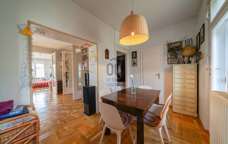 Eladó a II. kerület egyik LEGELEGÁNSABB ÉS LEGKEDVELTEBB utcájában, az ÉRMELLÉKI UTCÁBAN egy NAPFÉNYES, POLGÁRI HANGULATÚ, IGAZI RITKASÁG.A 90 m²-ES, NAGY SZOBÁKKAL rendelkező lakás a ház 2. EMELETÉN található, amelyet egy 9 m²-ES FEDETT TERASZ és egy KIS ERKÉLY egészít ki. A terasz ideális a KELLEMES REGGELI KÁVÉHOZ, miközben a ZÖLD KERTRE nyíló kilátásban LOMBOS FÁK, MADARAK ÉS MÓKUSOK teremtik meg a különleges budai hangulatot.A lakás KIFEJEZETTEN VILÁGOS, így egész nap TERMÉSZETES FÉNY járja át. A korábbi felújítás során gondosan megőrizték a KLASSZIKUS POLGÁRI KARAKTERT: felújított EREDETI FAPARKETTA, FA NYÍLÁSZÁRÓK, harmonikus térarányok és kellemes belmagasság.Az 1930-AS ÉVEKBEN ÉPÜLT, mindössze 9 LAKÁSOS társasházat ZÖLD KERTEK ÉS MAGAS FÁK veszik körül. A ház rendezett, a LÉPCSŐHÁZ FRISSEN FELÚJÍTOTT, a lakóközösség csendes és igényes. A lakáshoz egy 6 m2-es önálló tároló tartozik.Mindez egy CSENDES, FÁS UTCÁBAN, mégis pár perc sétára a SZÉLL KÁLMÁN TÉRTŐL és a SZÉNA TÉRTŐL, a MAMMUTTÓL és a FÉNY UTCAI PIACtól – kiváló infrastruktúrával, neves iskolákkal és óvodákkal a közelben.ELEGÁNS BUDAI OTTHON – AHOL A VÁROSI ÉLET ÉS A ZÖLD NYUGALOM TALÁLKOZIK.A hirdetés látványterveket is tartalmaz!