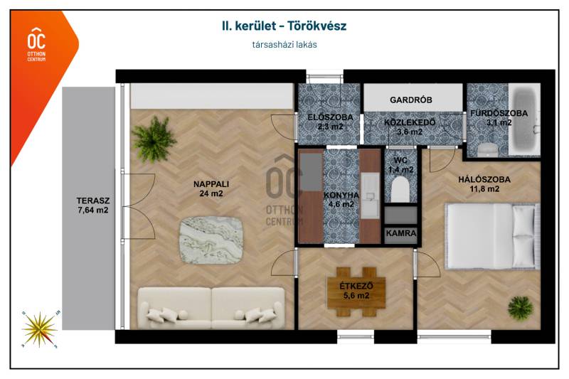 Törökvész egyik csendes utcájában kínálunk megvételre egy nettó 56,3 m²-es, 7,67 m2 teraszos lakást, ahonnan páratlan ÖRÖKPANORÁMA tárul elénk Budapest ikonikus épületeire.A 7,67 m²-es teraszról a város szinte teljes látképe elénk tárul: rálátás nyílik a Parlamentre, a Szent István Bazilikára, a Mátyás Templomra és a Citadellára.Az ingatlan DK tájolású, így egész nap világos, napfényes és rendkívül hangulatos.A LAKÁS* 56,3 m² lakótér* 7,67 m² panorámás terasz* jelenleg 2 szobás, de könnyedén 3 szobássá alakítható* a lakáson belül csak válaszfalak találhatók, így a belső tér szabadon alakítható* 2. emelet* DK tájolás, napfényes, csendesFűtés: gázkazánTÁROLÁSA lakáshoz tartozik egy 4,25 m²-es önálló tároló a ház földszintjén, amely kényelmes megoldást biztosít a ritkábban használt tárgyak elhelyezésére.PARKOLÁS*14,8 m²-es garázs* a garázs előtt egy kisebb autó számára további parkolóhelyA garázs önálló helyrajzi számon szerepel, vételára: 20 millió Ft.TÁRSASHÁZ* rendezett, kulturált lakóközösség* csendes, nyugodt lakókörnyezetINFRASTRUKTÚRA & KÖRNYÉKA környék a II. kerület egyik legkedveltebb része: nyugodt, mégis kiváló infrastruktúrával rendelkezik.Közlekedés* Széll Kálmán tér karnyújtásnyira* buszjáratok a közelben* autóval rövid idő alatt elérhető a budai és a pesti belváros isBevásárlás & szolgáltatások* Mammut Bevásárlóközpont karnyújtásnyira* Rózsakert Bevásárlóközpont* Budagyöngye Bevásárlóközpont* élelmiszerboltok, gyógyszertárak, kávézók és szolgáltatások a közelbenOktatásA környéken több kiváló iskola és óvoda található, többek között:* Klebelsberg Kuno Általános Iskola és Gimnázium* SEK Budapest International School* Lauder Javne Jewish Community SchoolZöldterületek & kikapcsolódás* Budai-hegység kirándulóútvonalai percekre* parkok, erdei séták, sportolási lehetőségek a közelbenÖSSZEFOGLALVAEz az ingatlan ideális választás azok számára, akik:* örökpanorámás budai lakást keresnek* értékelik a csendes, nyugodt környezetet* ugyanakkor fontos számukra a kiváló infrastruktúraA teraszról elénk táruló budapesti látkép valóban különleges hangulatot ad ennek az otthonnak.Bővebb információért, megtekintési időpontért vegye fel velem a kapcsolatot elérhetőségeim egyikén!Hívását a hét bármely napján örömmel fogadom!