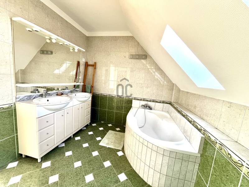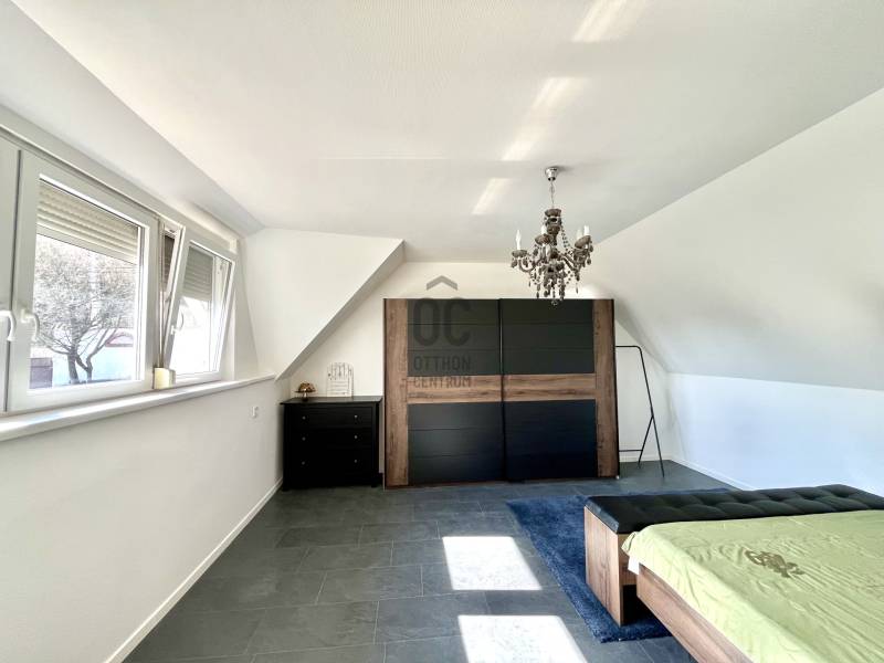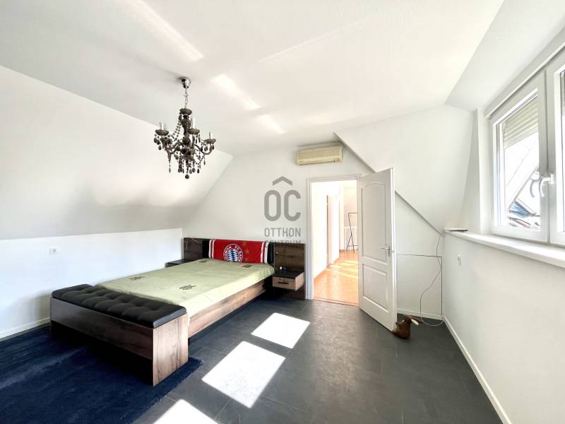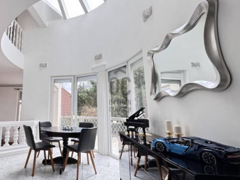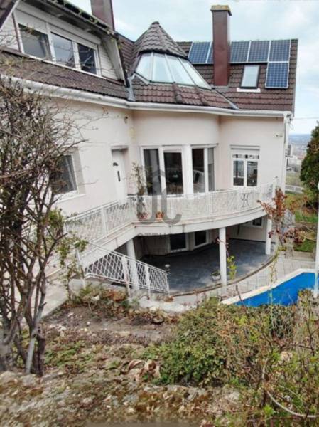 Csodálatos panoráma, egyedi tervezés, nagy, világos terek jellemzik ezt a 350 m2-es, 3 szintes családi házat.A ház 2000 körül épült, de 2019-ben jelenlegi tulajdonosa korszerűsítette, szigetelte, felújította. Kialakításra került egy új, elektromos kazánnal működtetett fűtési rendszer (padlófűtés), melynek támogatására egy napelemrendszer is telepítésre került. A ház három szintre tagolódik.Az alsó szinten három tároló és hobbiszoba, egy kádas fürdőszoba és a kazánház található.Az emeleten egy tágas, napfényes, hatalmas terasszal rendelkező amerikai konyhás nappali, egy tároló, egy hálószoba, és egy zuhanyzós fürdőszoba kapott helyet.A tetőtérben három nagyméretű, különnyíló hálószoba található egy kádas és zuhanyzós fürdőszobával.Az alsó szinten egy teljesen elszeparált, külön bejárattal rendelkező, kertkapcsolatos, panorámás vendégház is kialakításra került, amelyben kettő szoba, egy konyha, egy előszoba, és egy zuhanyzós fürdőszoba található. A kert rendezett, locsolórendszerrel ellátott, és egy jelenleg használaton kívüli medence is található benne.A házhoz tartozik egy utcáról nyíló, két beállásos garázs, de az udvaron további egy parkolóhely is kialakításra került. A panoráma mind az udvarról, mind a teraszról lélegzetelállító! Ez a családi ház ideális választás azok számára, akik a város közelségét, de a nyugalmat és a természetet is keresik. Mind saját célra, mind befektetésnek kiváló választás!Az ingatlan, igény esetén, bútorozva is megvásárolható.Ne késlekedjen! Jöjjön és nézze meg még ma!