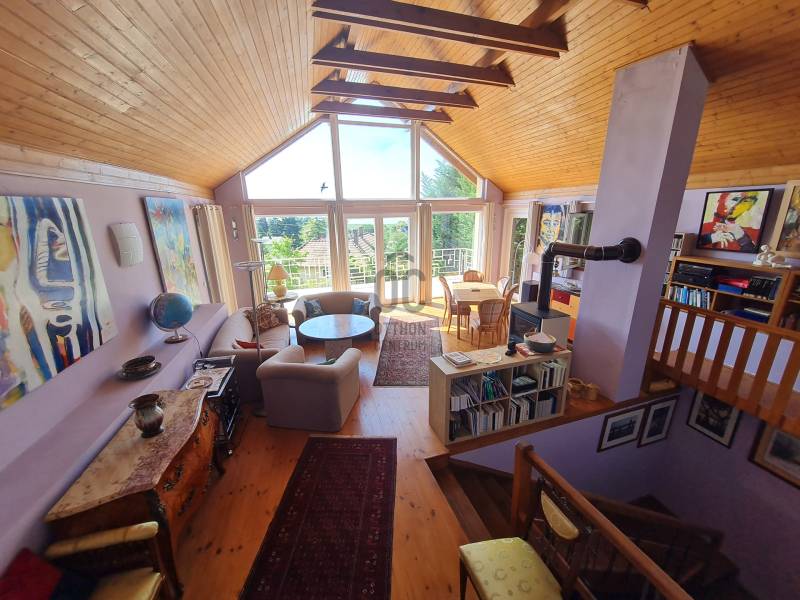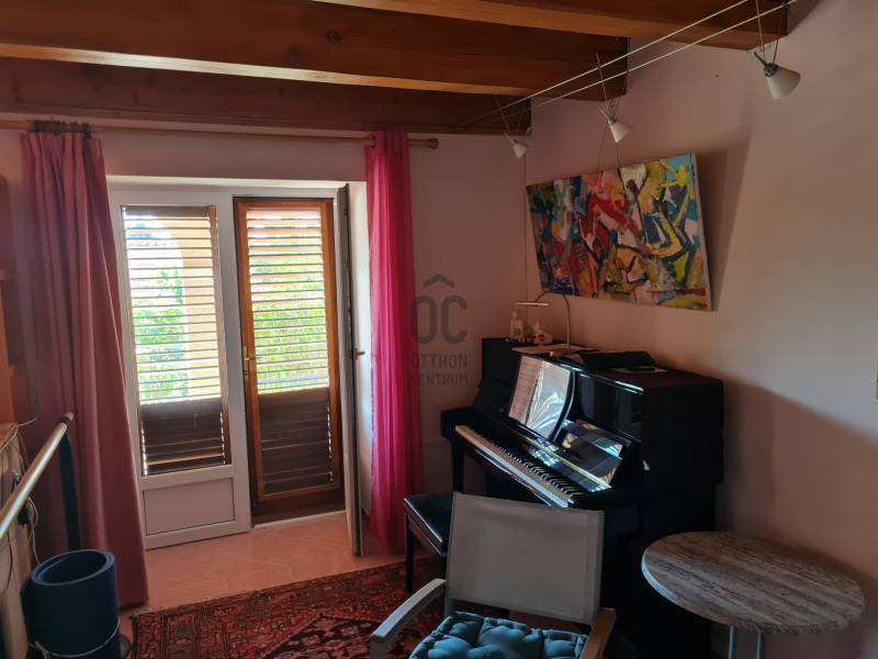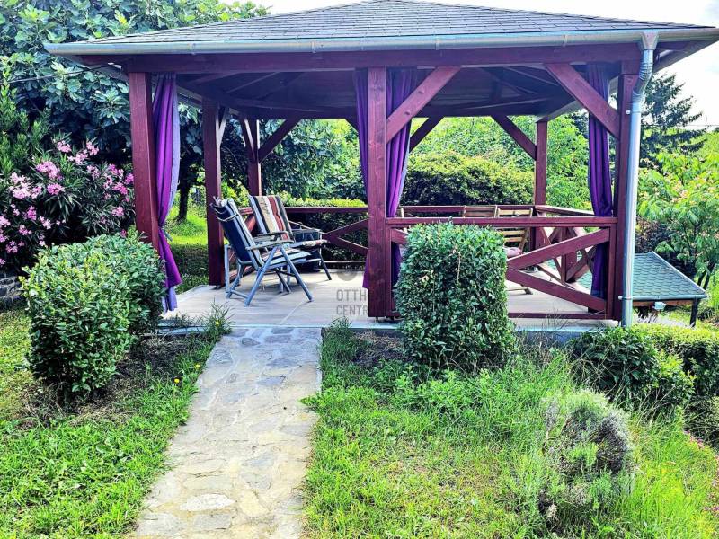 Badacsonyban vált eladóvá ez a különleges atmoszférával rendelkező épület, mely egyedi kialakításával egyből kitűnik az őt körülölelő ingatlanok közül. A területről és a ház egészéből meseszép a panoráma a Balaton vizére, de ha ez nem lenne elég, a Badacsony is ott magasodik az épület mögött.A belterületi, 1519 négyzetméteres telken a jelenlegi tulajdonos tervei és álmai alapján készült el 2005-ben a hétvégi házként bejegyzett ingatlan – mely családi otthonnak is kitűnő választás lehet -. Az épület alapjául egy már meglévő bazaltkő pince szolgált, ez került átépítésre és bővítésre korszerű anyagok felhasználásával.A ház két szinten összesen 166 négyzetméternyi hasznos alapterülettel rendelkezik.A földszinten kialakított helyiségeket az előtérből közelíthetjük meg. Itt található egy 27 négyzetméteres, parasztfödémes, meghitt hálószoba, mely közvetlen kertkapcsolattal rendelkezik és akár két különálló hálóvá osztható. Mellette kapott helyet a lépcsőház, egy fürdőszoba, tároló, pince és egy műterem.Az emeleten lévő helyiségek közül a teljes üvegfelülettel ellátott nappali/műterem és a hozzá tartozó terasz olyan egyedi és megismételhetetlen hangulatot áraszt, hogy itt egyből az az érzése az embernek, hazaért...Ezt a nappali részt egészíti ki még egy közlekedő, hálószoba, fürdőszoba, konyha és étkező, valamint egy loggia is.Az épület mindkét szintjén beépítésre került egy-egy fatüzelésű kályha, így hűvösebb időszakban ezek szolgáltatják a meleget.A kert teljesen körbekerített, több autó egyidejű parkolása is megoldható telken belül.Az udvar teraszos kialakítású, akár egy medence, gyermek játszó vagy nyári konyha kiépítésére is bőven van még hely.Az épület melletti részen egy fedett, hangulatos kerti kiülő is helyet kapott, a kert alsó részén pedig egy téglából épült tárolót is építettek.A ház egész évben aszfaltos úton könnyen megközelíthető, a Balaton partjától gyalogosan 15 percre, a központtól 2 perces autóútra van.Ajánlom az ingatlant mindazok figyelmébe, akik a “béke szigetét” keresik távol a világ zajától. Az épület állandó lakhatásra és nyaralónak is egyaránt tökéletes választás lehet!Amennyiben kérdése merülne fel az épülettel kapcsolatban, vagy szeretné azt megtekinteni, kérem keressen megadott elérhetőségeim egyikén!